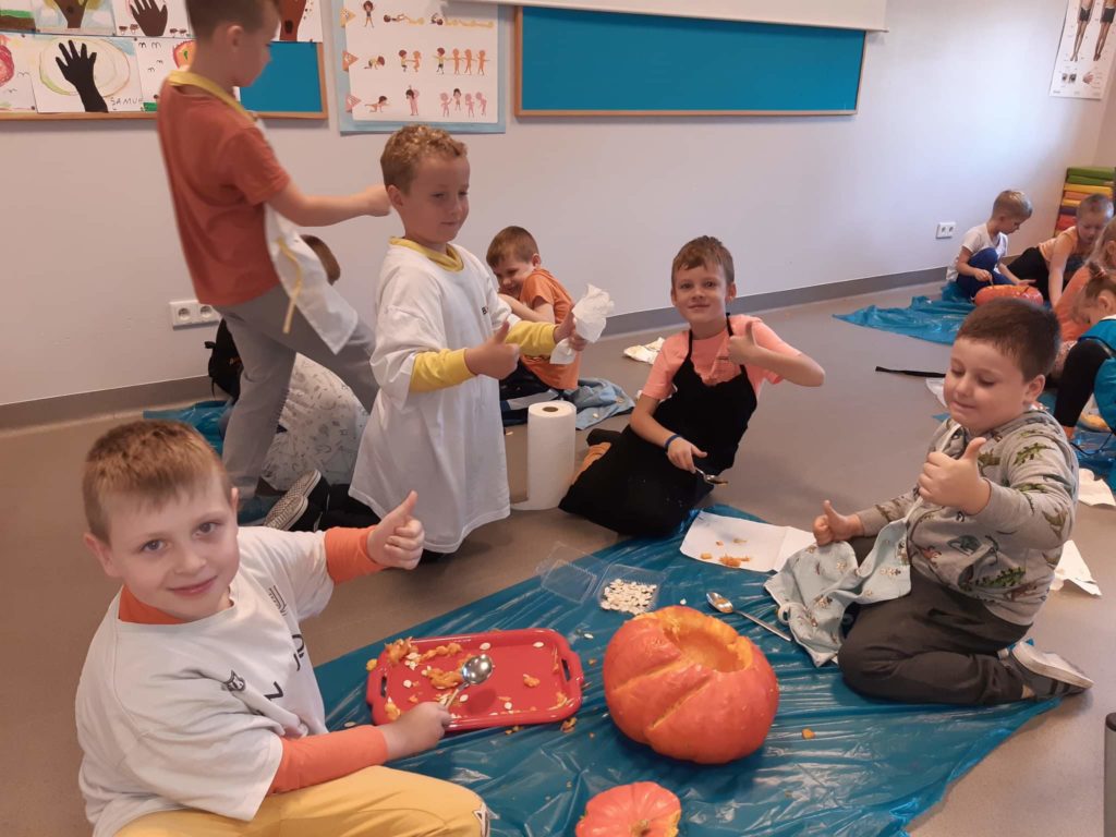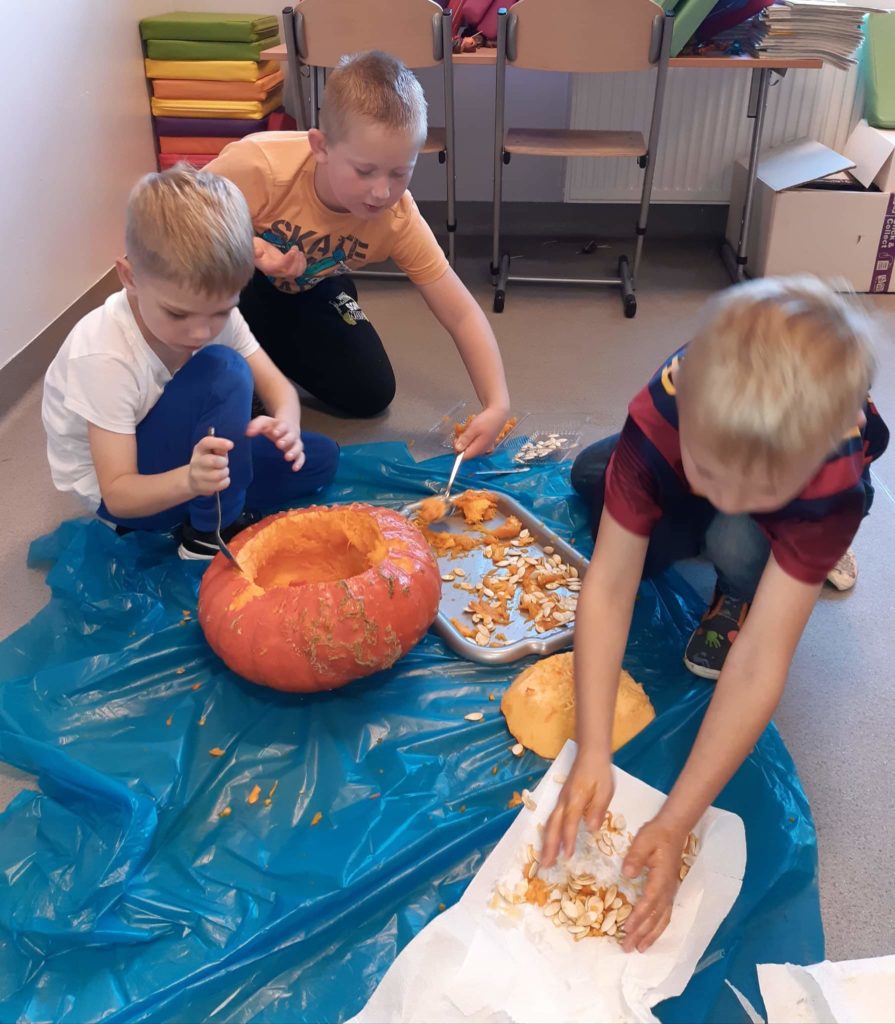 28 października 2022 r. uczniowie klasy 1E obchodzili Dzień Dyni. Z tej okazji dzień przepełniony był zabawami sensorycznymi 🍁🍁