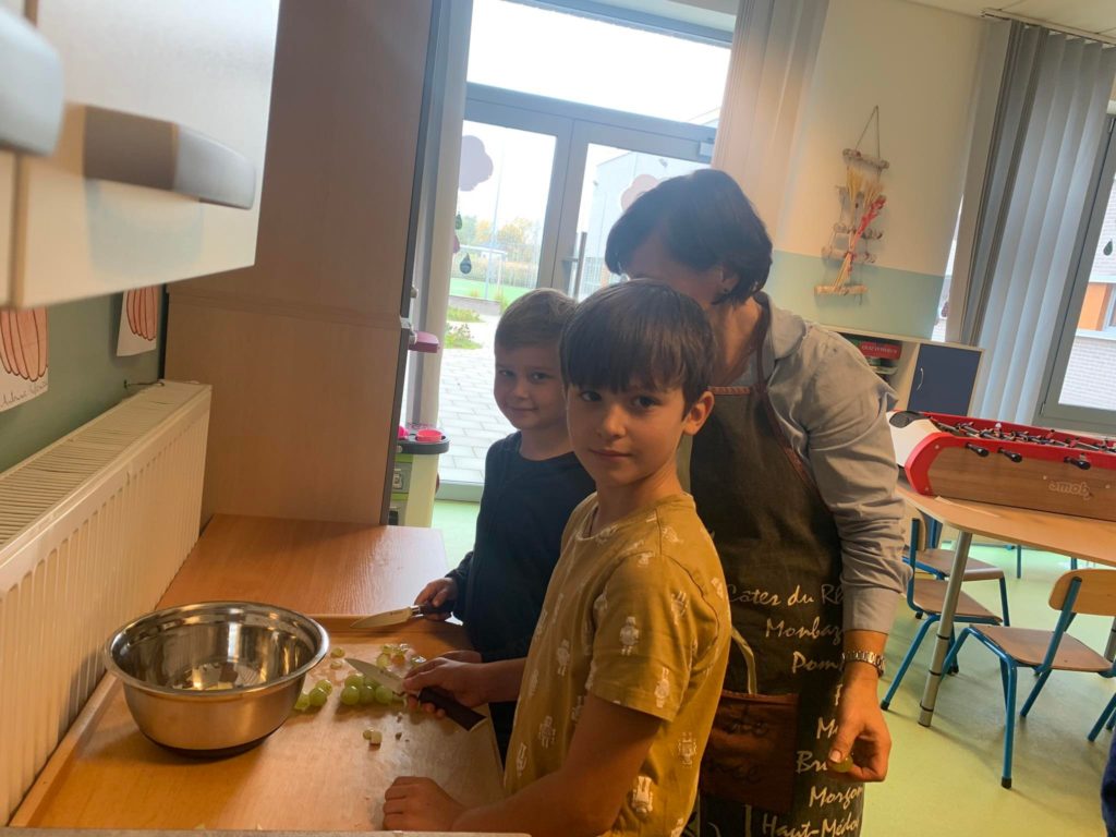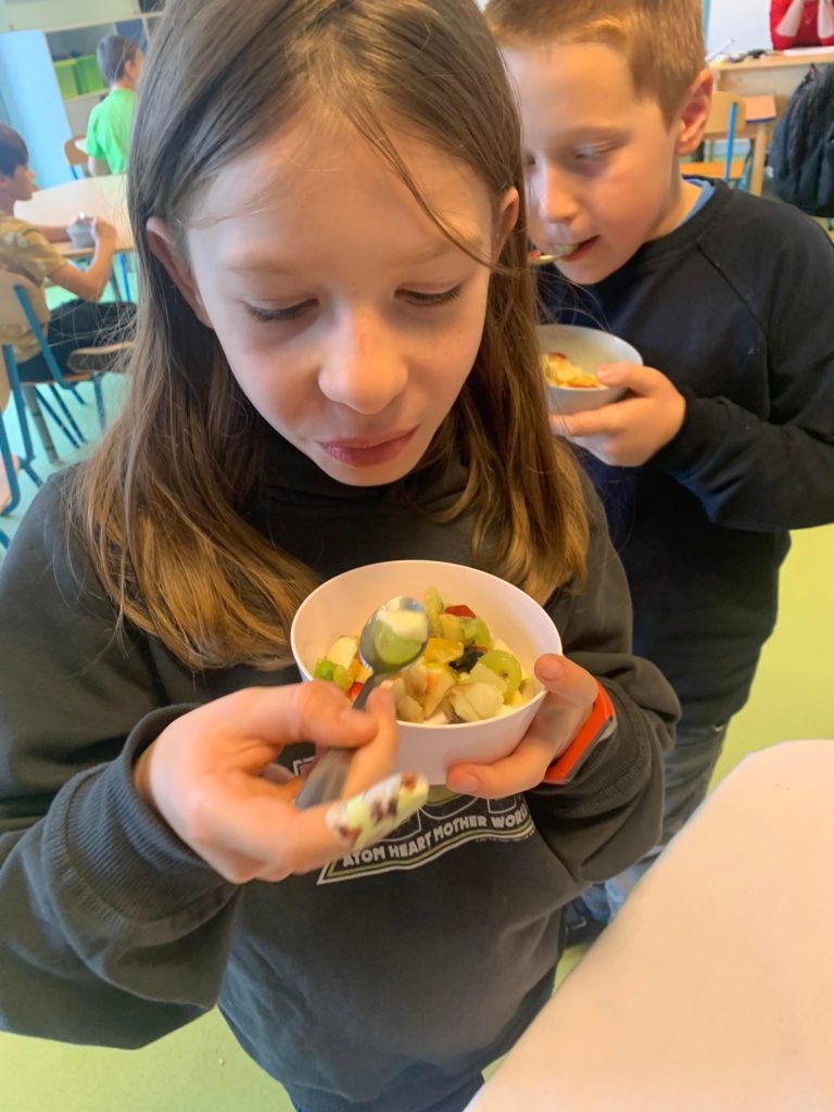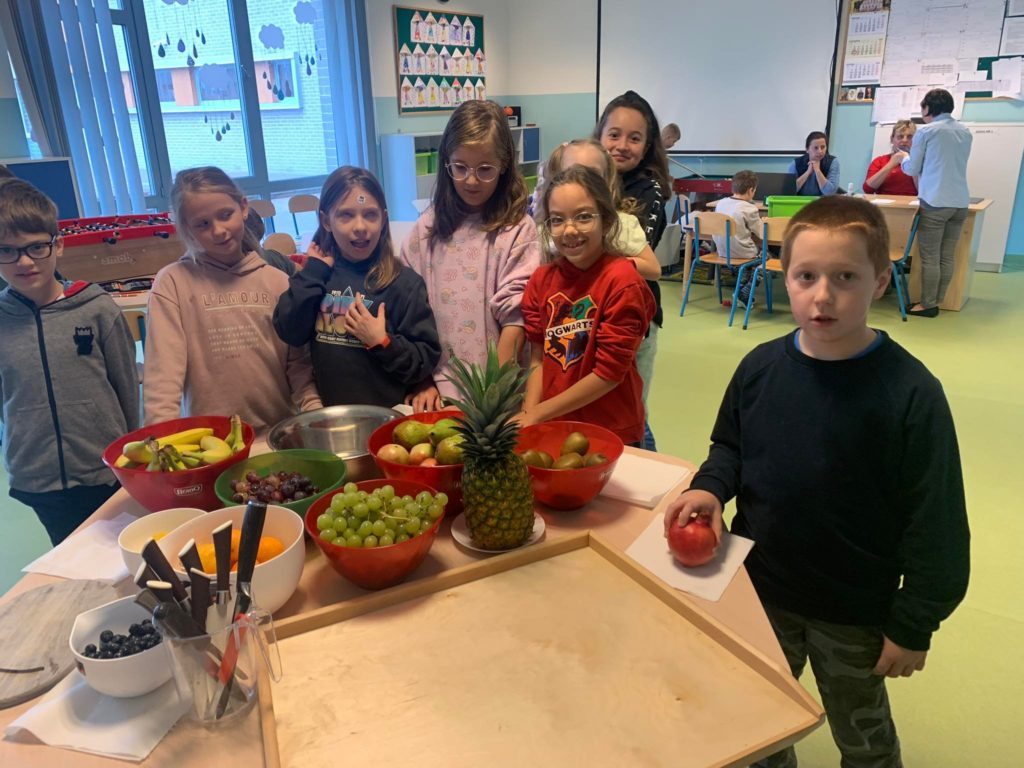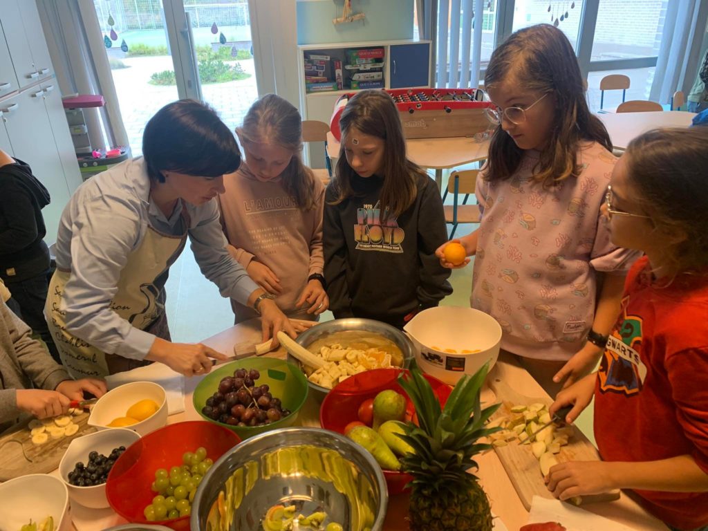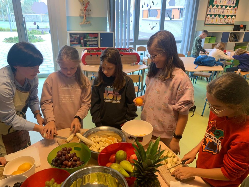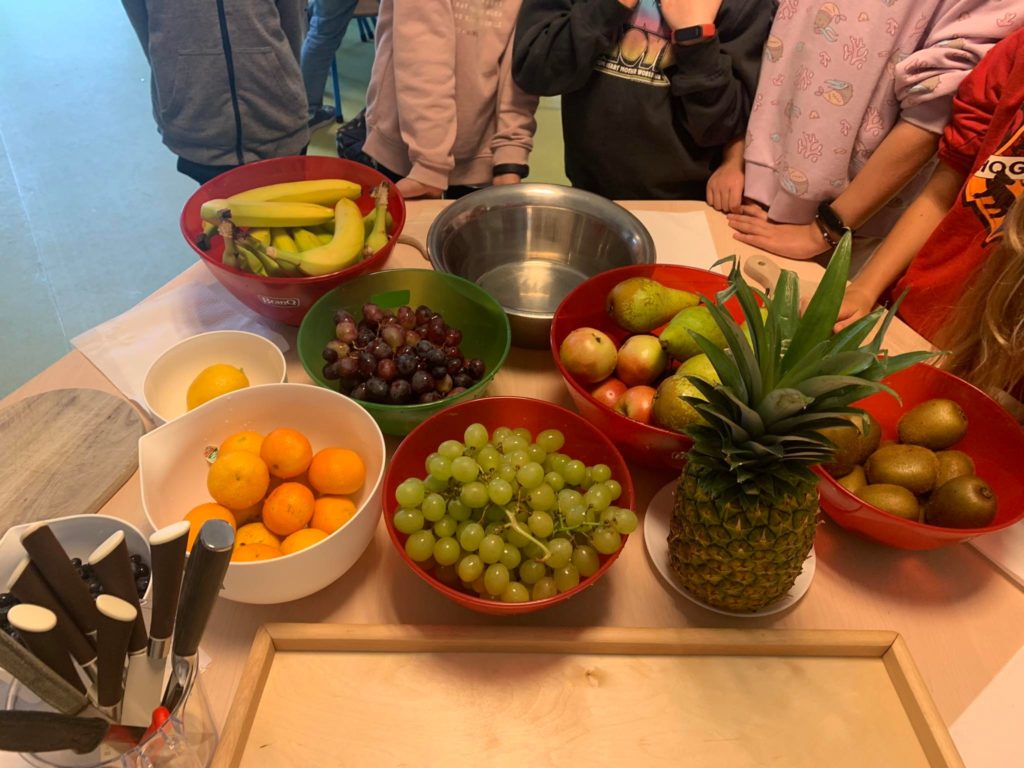 19 października 2022 r. w naszej świetlicy po raz kolejny odbyły się zajęcia kółka kulinarnego. W czasie dzisiejszego spotkania, dzieci pod nadzorem wychowawców przygotowywały sałatkę owocową, która wszystkim dzieciom bardzo smakowała. Przyrządzanie takiej kolorowej i pełnej witamin sałatki przyniosło dzieciom wiele radości oraz zachęciło do zdrowego odżywiania się. Sprawne przygotowanie naszych smakołyków umożliwiły nam sprzęty zakupione dzięki uczestnictwu szkoły w programie „Laboratorium Przyszłości”