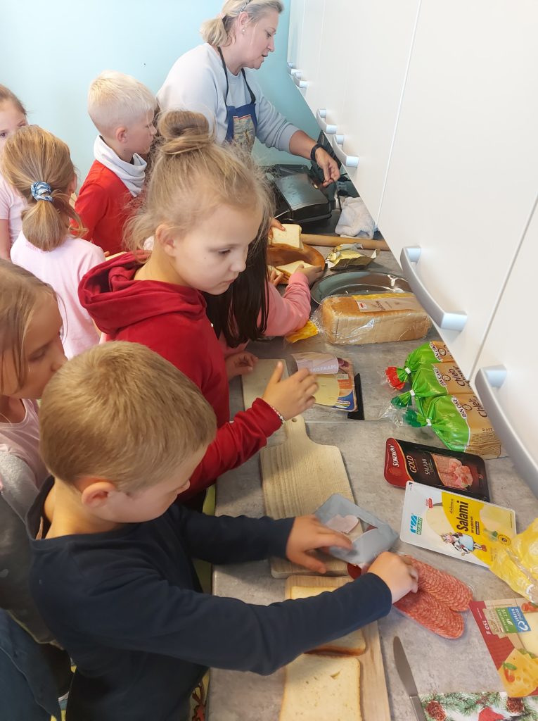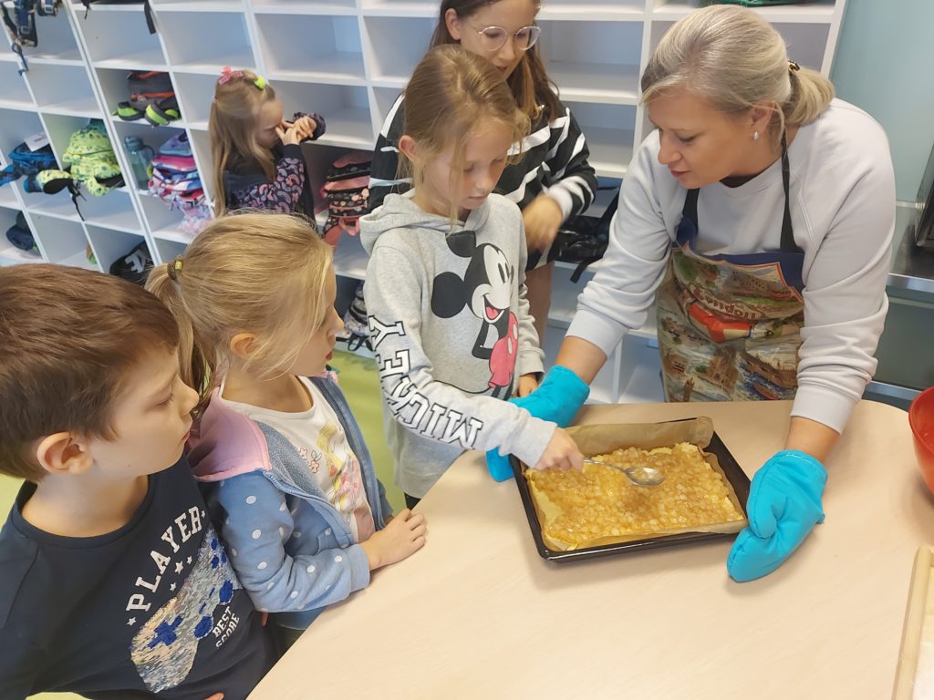 Kolejne zajęcia kulinarne odbyły się w świetlicy szkolnej. Dzieci zrobiły pyszne tosty oraz z pomocą wychowawców świetlicy upiekły pyszną szarlotkę. Zapachy roznosiły się po całej szkole