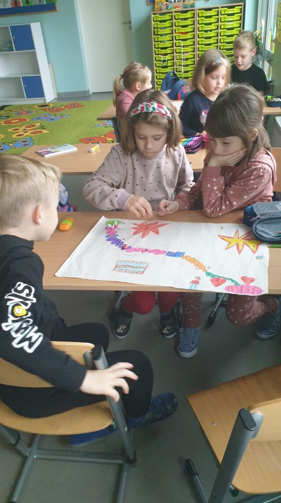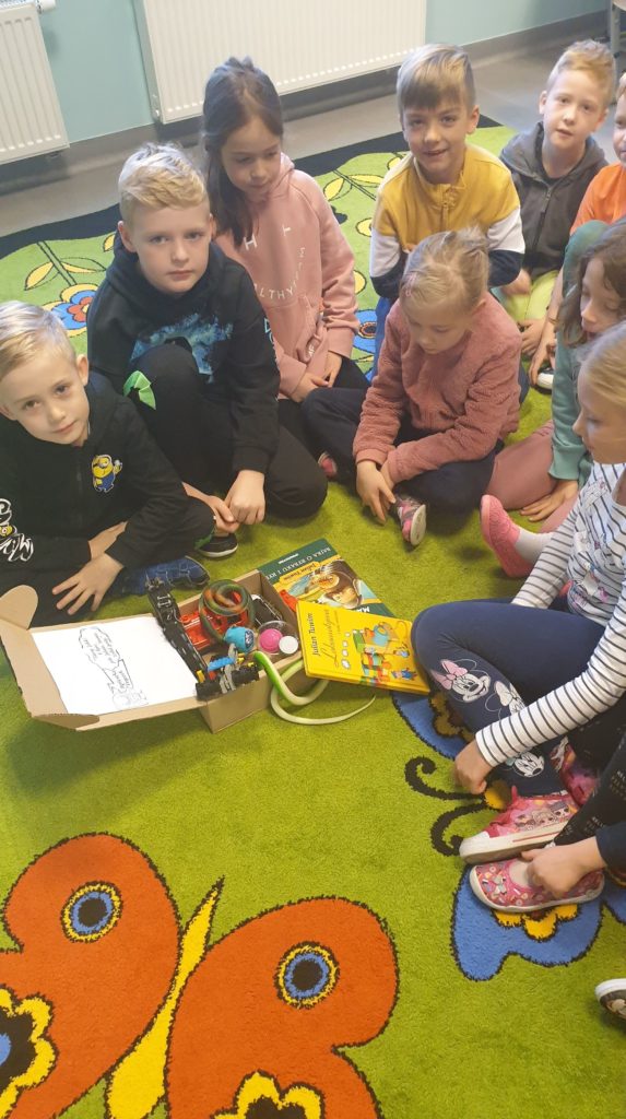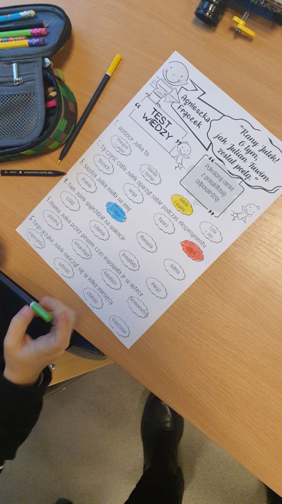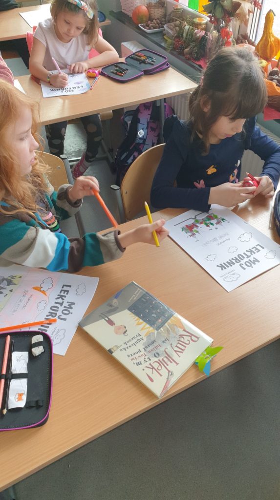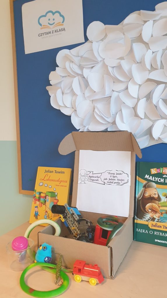 Klasa 1D w październiku rozpoczęłą przygodę z projektem ,,Czytam z klasą. Lekturki spod chmurki – edycja IV”. Uczniowie na początku odwiedzili bibliotekę, gdzie samodzielnie wypożyczyli książkę. Z dużym zaangażowaniem wykonali zadania do lektury „Rany Julek! O tym, jak Julian Tuwim został poetą”. Wspólnie przygotowali chmurkę Tosię, wysłuchali opowiadania o niej, wypełnili lekturniki, stworzyli grę, lekturę w pudełku oraz wykonali ilustrację do książki na zajęciach informatycznych w programie paint. Poznali rodzinne miasto Juliana Tuwima – Łódź. Na koniec rozwiązali test z wiadomości celująco.