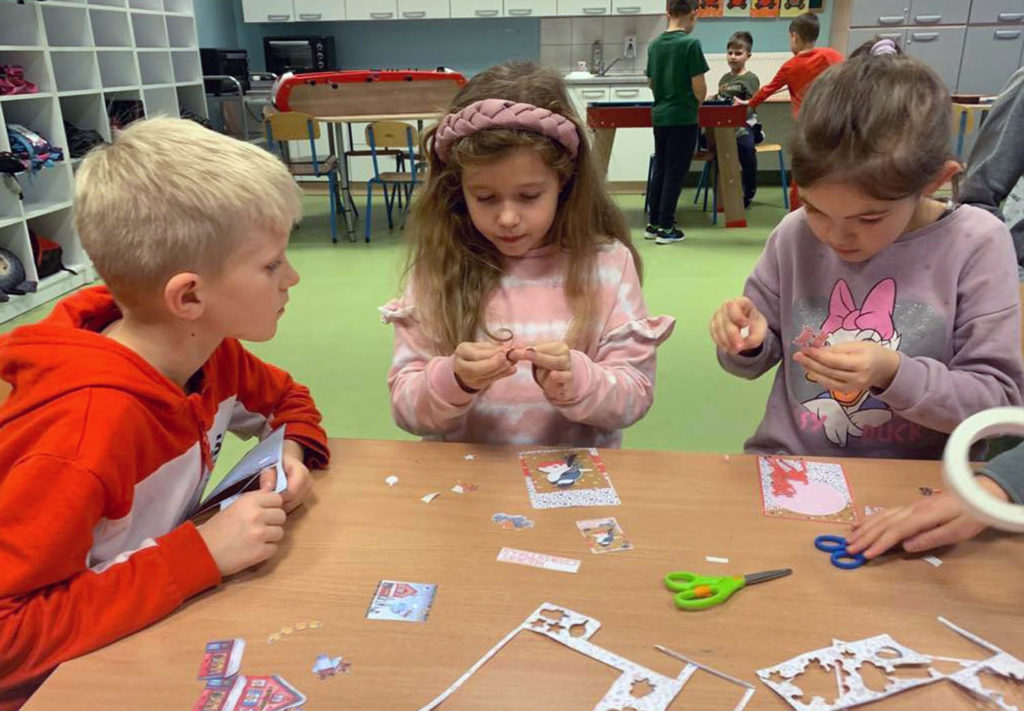 W świetlicy szkolnej ruszyły prace związane z kiermaszem świątecznym. Uczniowie z wielkim zapałem wykonują kartki bożonarodzeniowe oraz ozdoby z makramy. Radość z własnoręcznie wykonywanych ozdób jest ogromna! Więcej informacji dotyczących kiermaszu wkrótce.