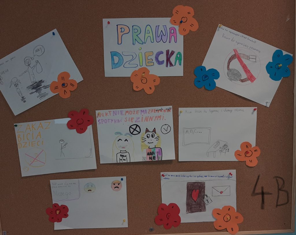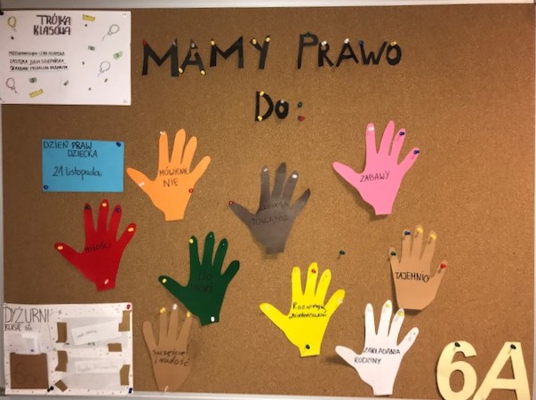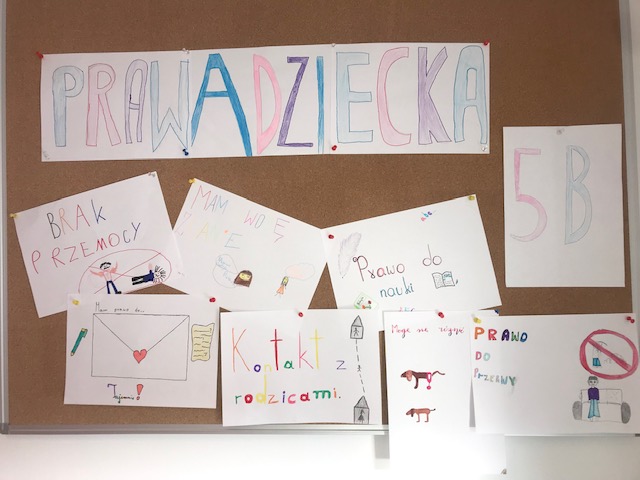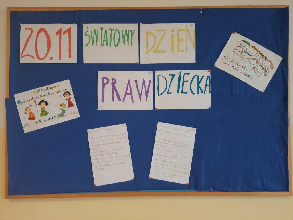 W ramach obchodów Międzynarodowego Dnia Praw Dziecka na godzinach wychowawczych przeprowadzone zostały zajęcia na temat praw dziecka. W klasach oraz na holu szkoły zostały wykonane gazetki tematyczne.