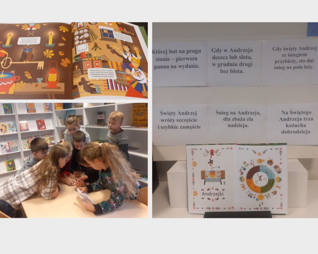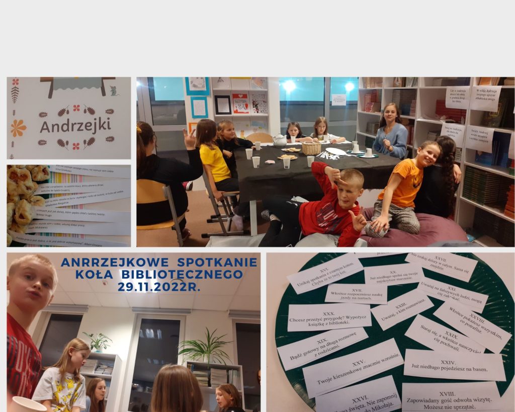 29 listopada 2022 r. obchodziliśmy w bibliotece szkolnej wigilię imienin św. Andrzeja, zwaną potocznie andrzejkami. Spotkanie rozpoczęliśmy literackimi sentencjami, które zostały osłodzone ciasteczkami z cynamonem. Przy herbatce natomiast, czytaliśmy o historii i tradycji andrzejek, które są pięknie opisane w książce pt. „Etnogadki: opowieści o dawnych obrzędach i zwyczajach”, aut. M. Michaluk (znajduje się w zbiorach biblioteki). Wieczór zakończyliśmy szalonymi kalamburami oraz wróżbami „z przymrużeniem oka”, których wynikiem były m.in. takie oto andrzejkowe życzenia: „Wkrótce pokażesz wszystkim, co potrafisz”, „ Nie szukaj dziury w całym. Sama się znajdzie”, „Wkrótce święta. Nie zapomnij napisać listu do Mikołaja.”