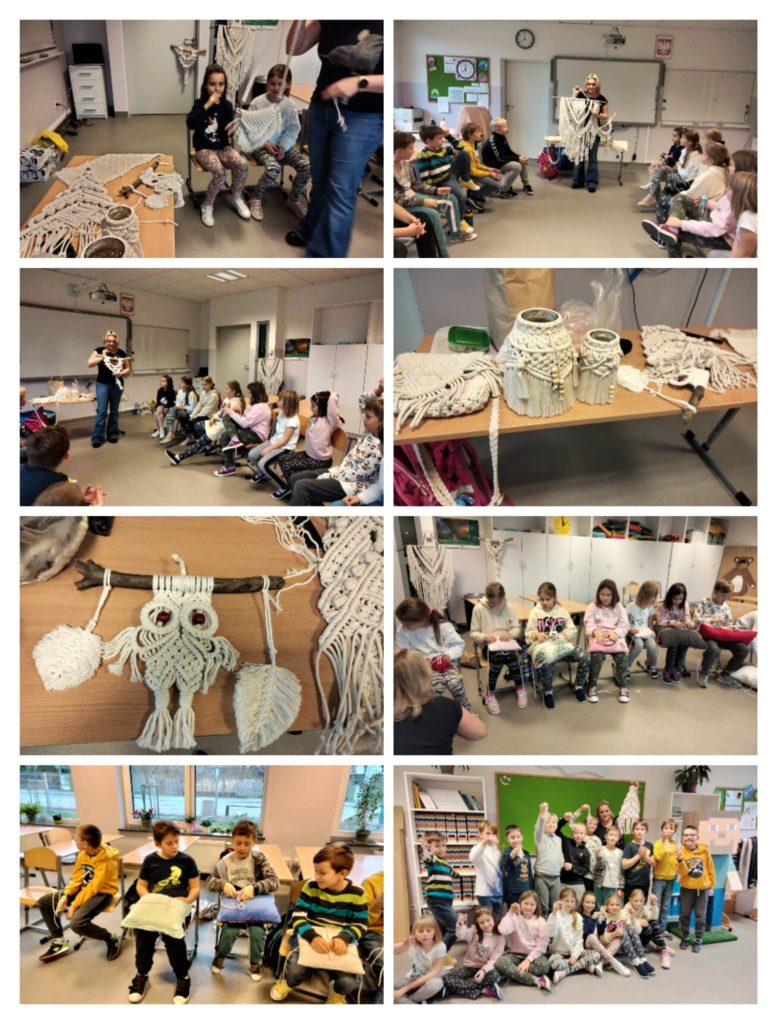 30 listopada br. ucznioiwe klasy 3D uczestniczyli w warsztatach makramy. Poznali technikę wyplatania sznurków. Powstały piękne choinki, którymi dzieci obdarują najbliższych.