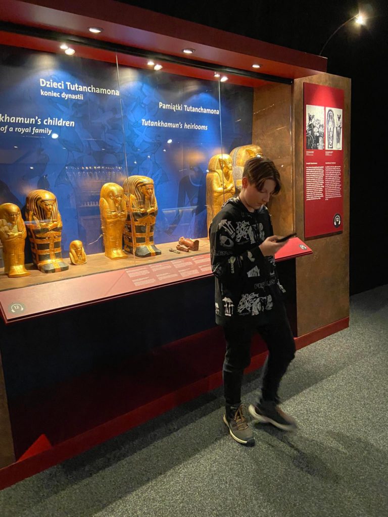 26 stycznia br. klasy 8A i 8D wybrały się do Warszawy na spektakularną wystawę Tutenchamon, podczas której mogły podziwiać grobowiec i skarby słynnego egipskiego faraona. 100 lat temu dokonano tego przełomowego odkrycia. To niesamowite miejsce przeniosło wszystkich obecnych do starożytnego Egiptu. Wszyscy uczestnicy wrócili do domu zadowoleni i bogatsi o nową wiedzę historyczną.