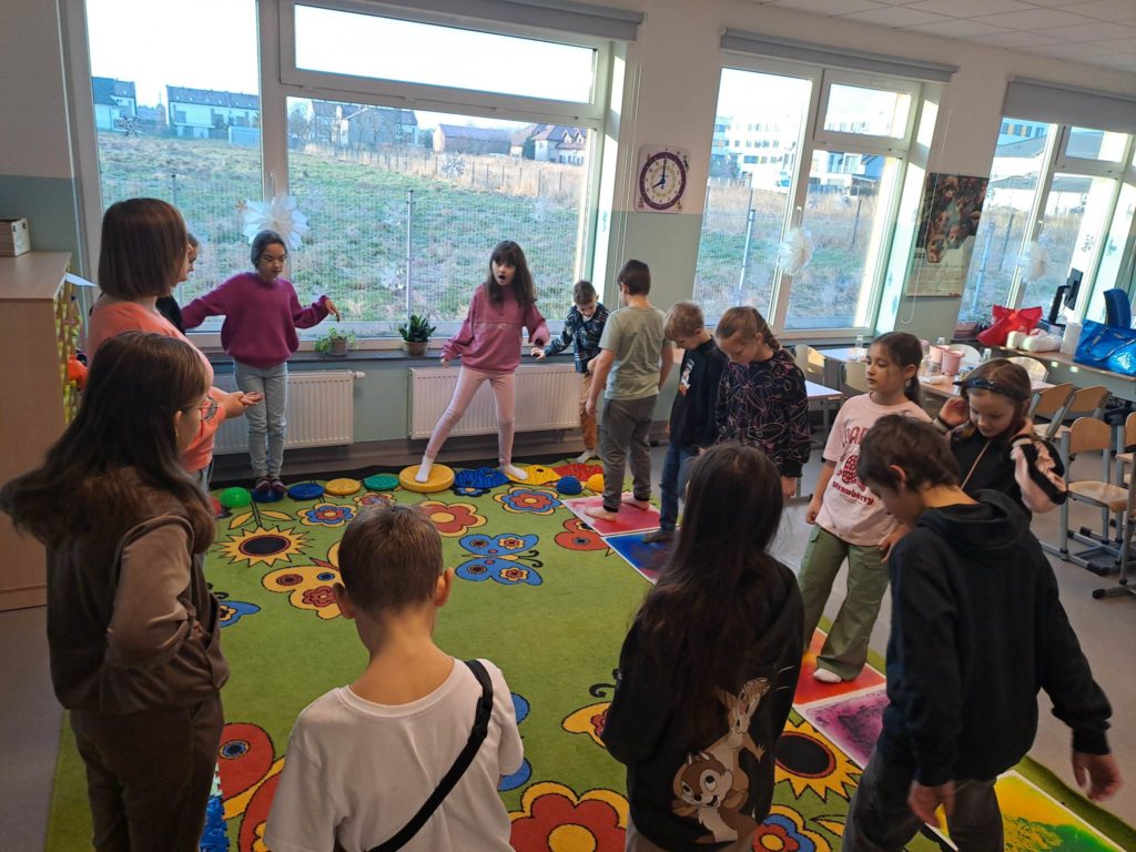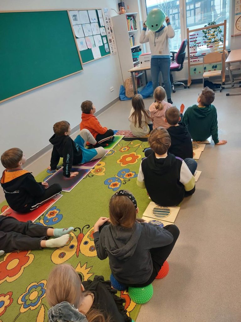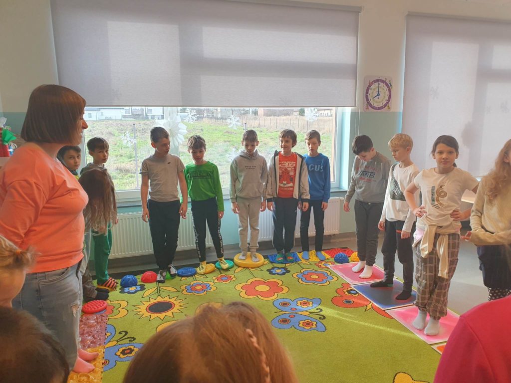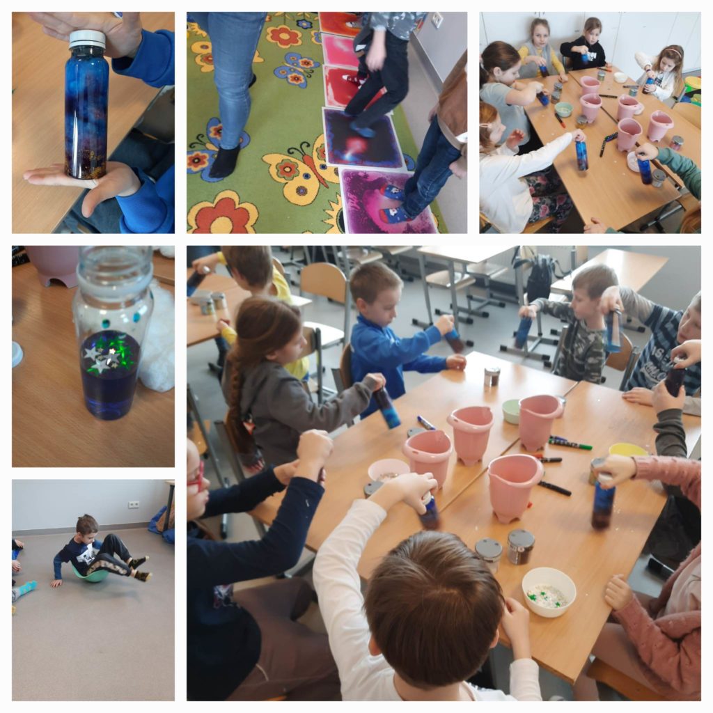 Odpowiedzią na to pytanie była praca plastyczna wykonana przez uczniów klas 0-3 podczas warsztatów sensorycznych odbywających się na terenie naszej szkoły 3 oraz 6 lutego 2023 r. Podczas tych zajęć uczniowie mogli poczuć się jak astronauci i pospacerować po galaktycznej ścieżce oraz poćwiczyć równowagę na zakręconej muszli sensorycznej.