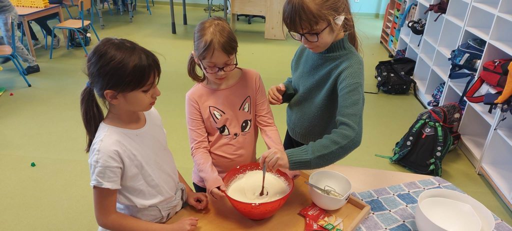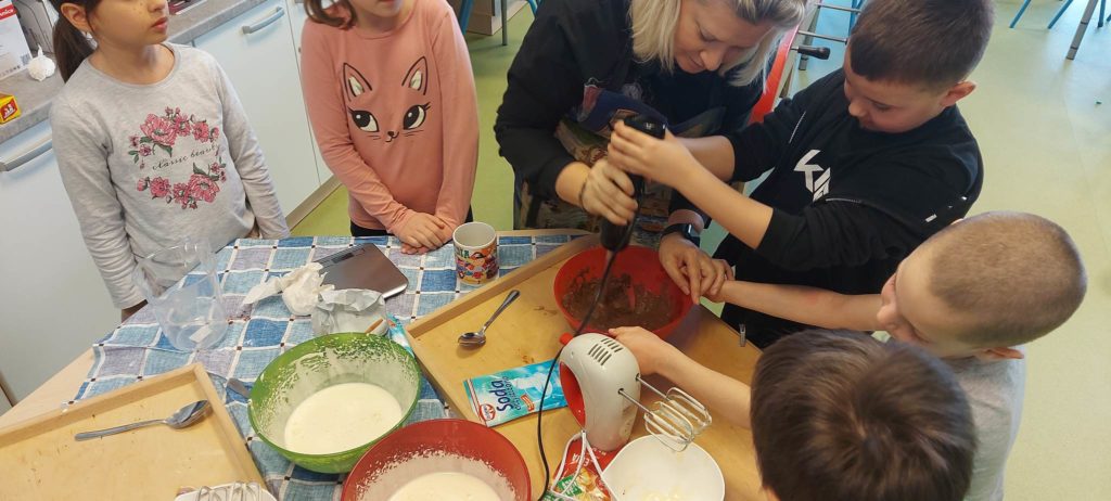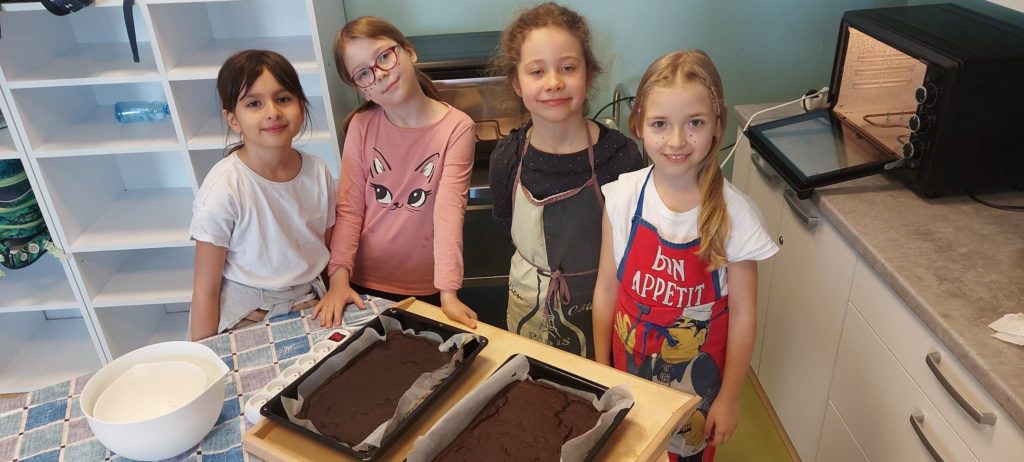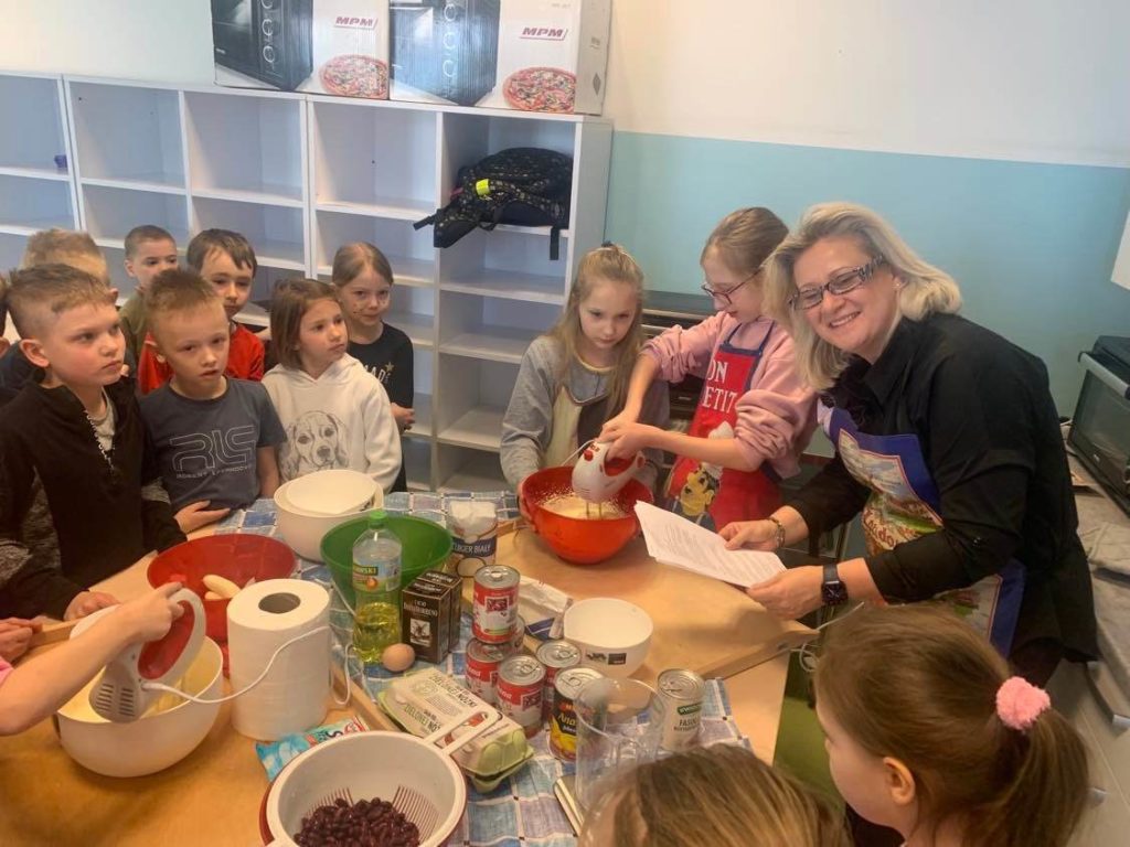 👨‍🍳 W świetlicy odbyły się kolejne zajęcia kulinarne 👨‍🍳 😋Tym razem dzieci z pomocą Pani Jagody upiekły BROWNIE CZEKOLADOWE Z CZERWONEJ FASOLI, jedno z dodatkiem banana 🍌, a drugie z dodatkiem ananasa🍍. To była zdrowa nowość dla uczniów 🥸