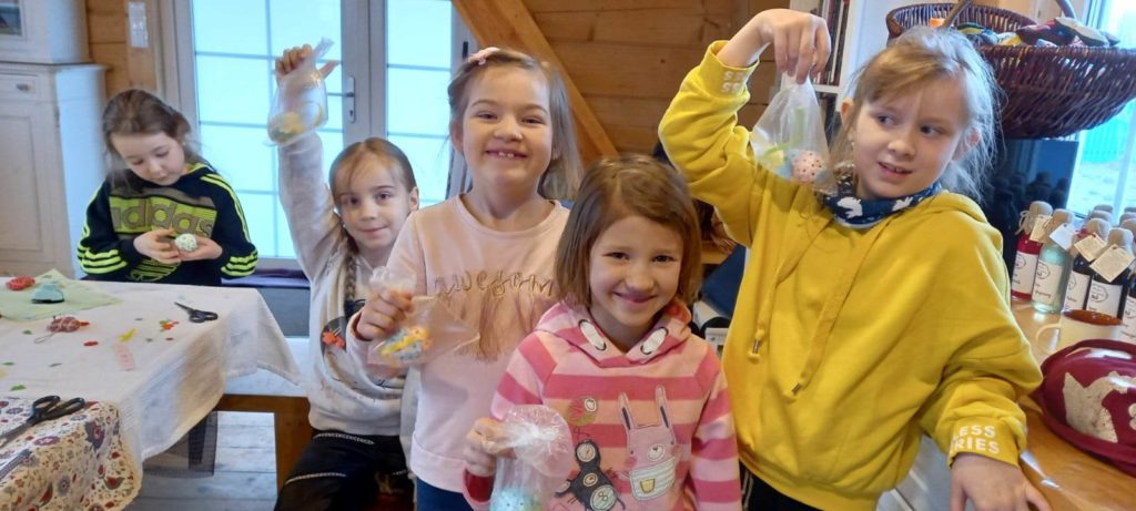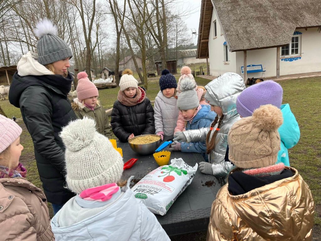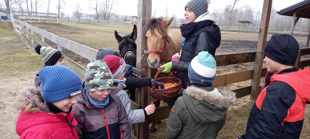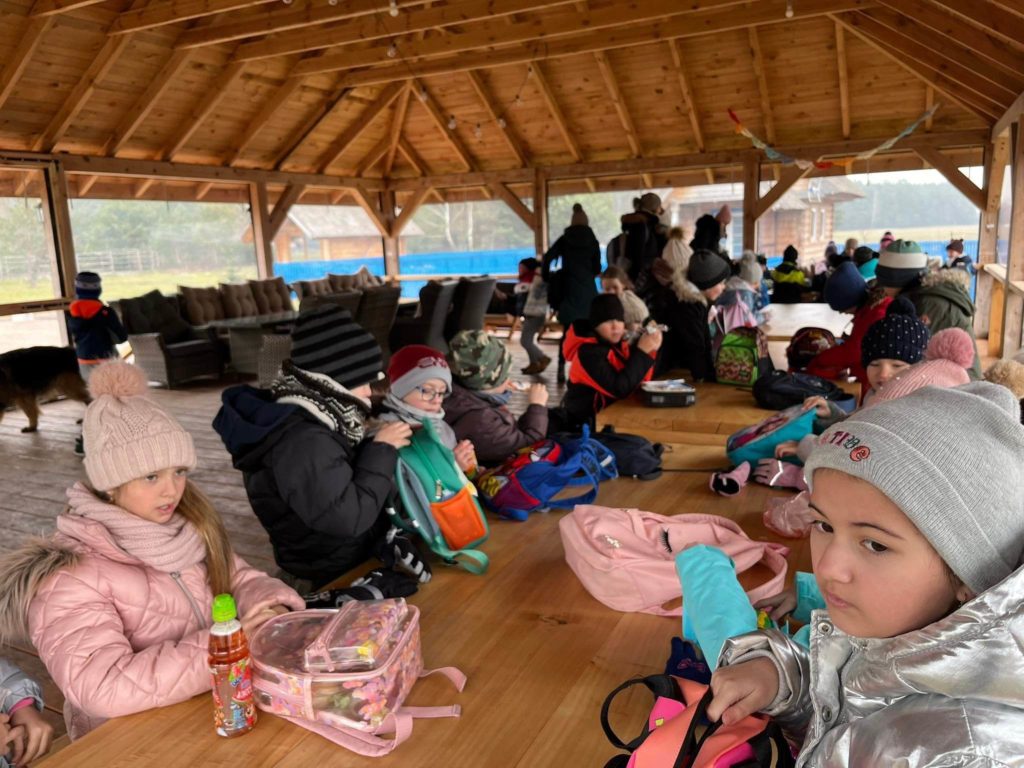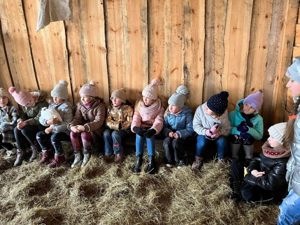 3 marca 2023 r. uczniowie z klasy 1A pojechali na wycieczkę do Gospodarstwa Edukacyjnego „Cuda i Wianki” w Kicinach. Podczas pobytu w tym wyjątkowym miejscu dzieci wzięły udział w warsztatach wielkanocnych, kulinarnych, plastycznych oraz przyrodniczych. Dużą atrakcją była dla dzieci gra terenowa, przejażdżka bryczką oraz karmienie zwierząt.
