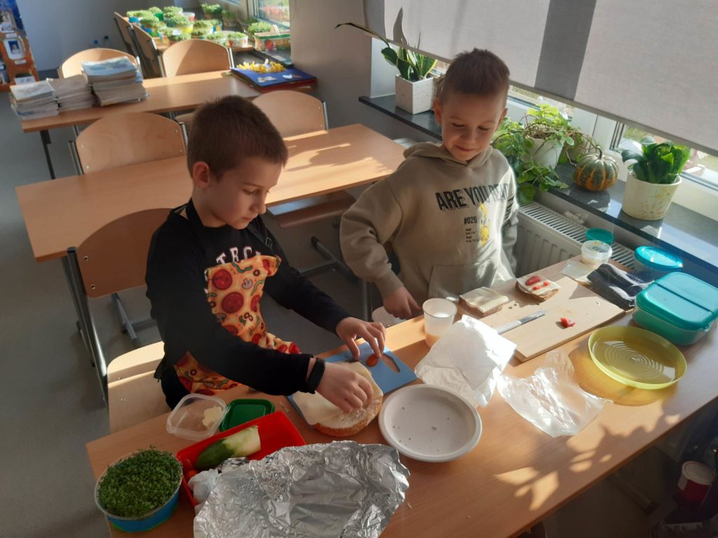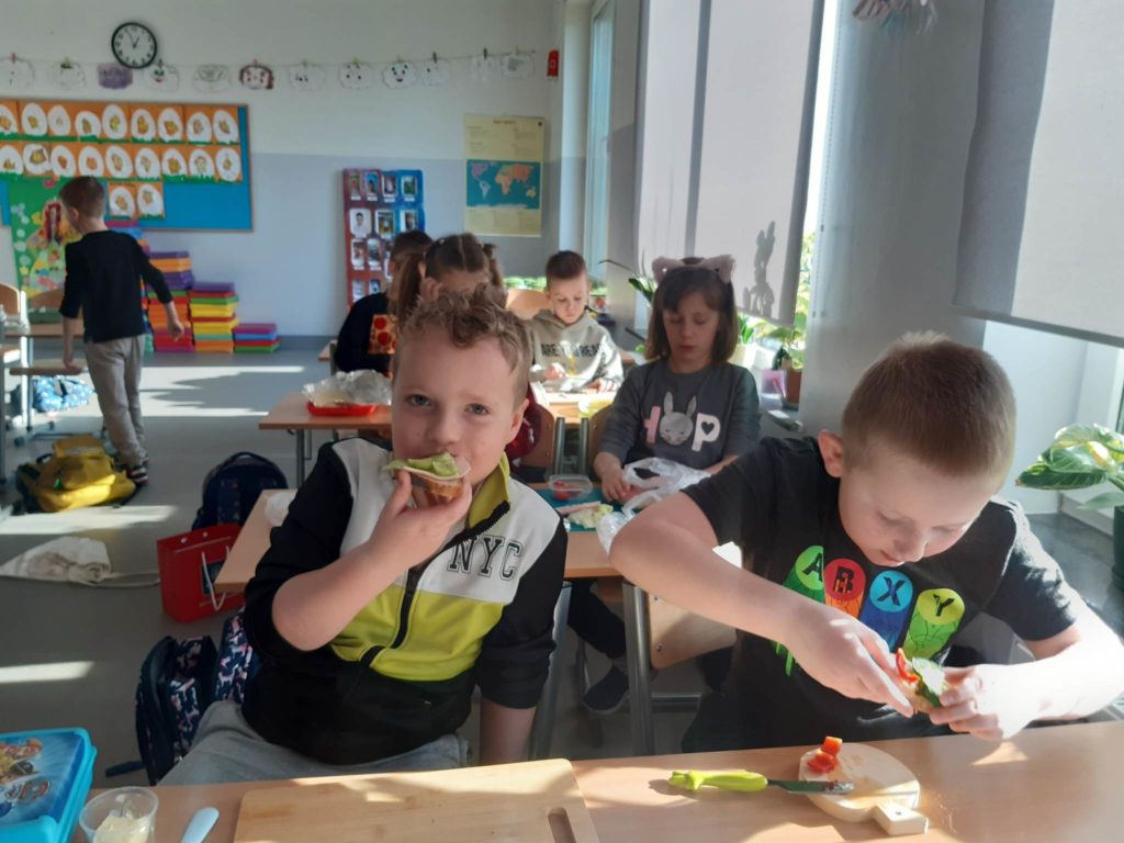 W klasie 1E przedświąteczny tydzień przebiegał w radosnej, wiosennej atmosferze wprowadzającej nas w niezwykły okres Świąt Wielkanocnych. Uczniowie samodzielnie przygotowali wiosenne kanapki, zasiali rzeżuchę, a także wykonali kolorowe prace plastyczne!