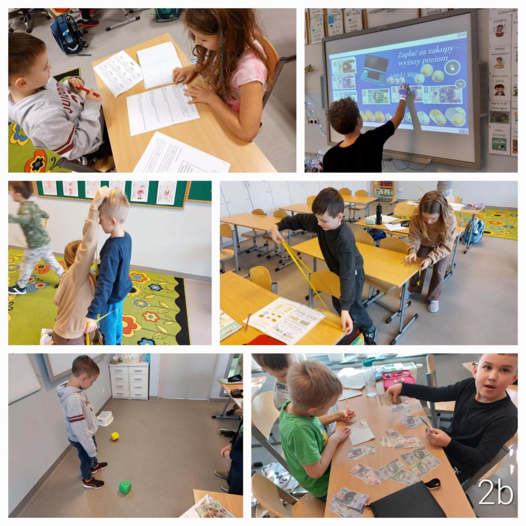Uczniowie klasy 2B praktycznie doświadczają matematyki w różnych sytuacjach życiowych. Nabierają wprawy, zdobywają nowe umiejętności przez zabawę. Dzieci uwielbiają taką formę nauki! 😊