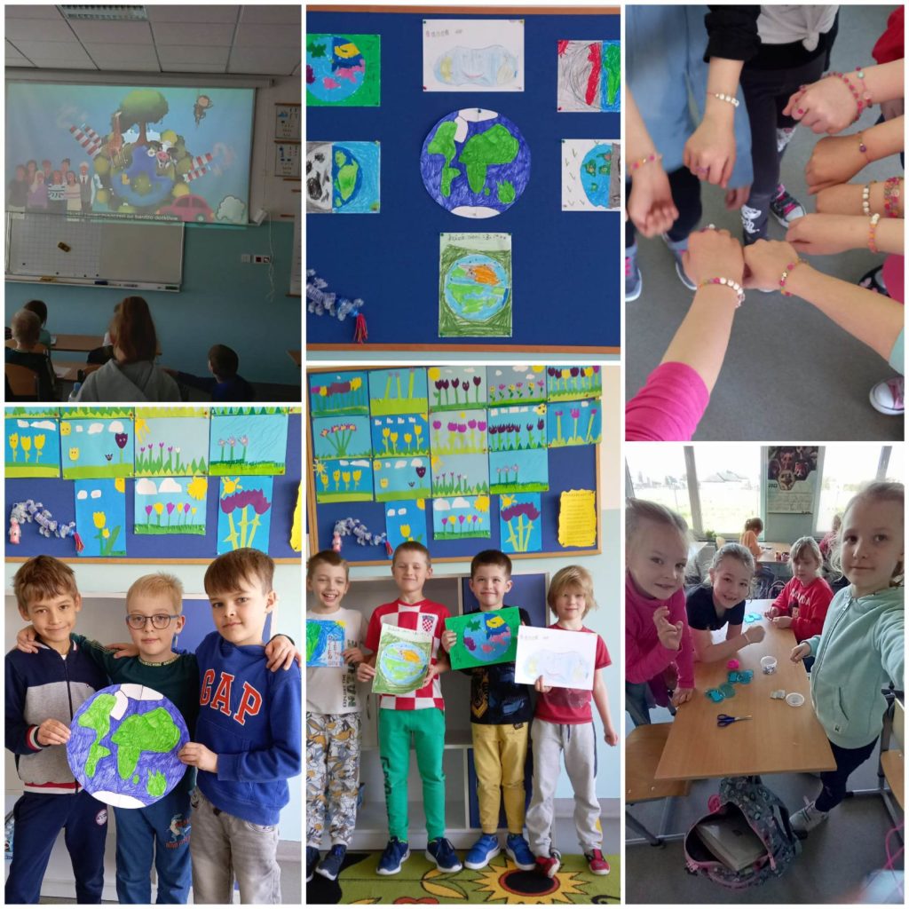 21 kwietnia 2023 r. w naszej szkole obchodziliśmy Międzynarodowy Dzień Ziemi. Dzień ten przypomina o konieczności dbania o środowisko. Uczniowie klas młodszych obejrzeli filmy dydaktyczne, z których dowiedzieli się, że każdy z nas może i powinien prowadzić ekologiczny styl życia. Dzieci wykonały plakaty, grały w gry i quizy o tematyce ekologicznej.