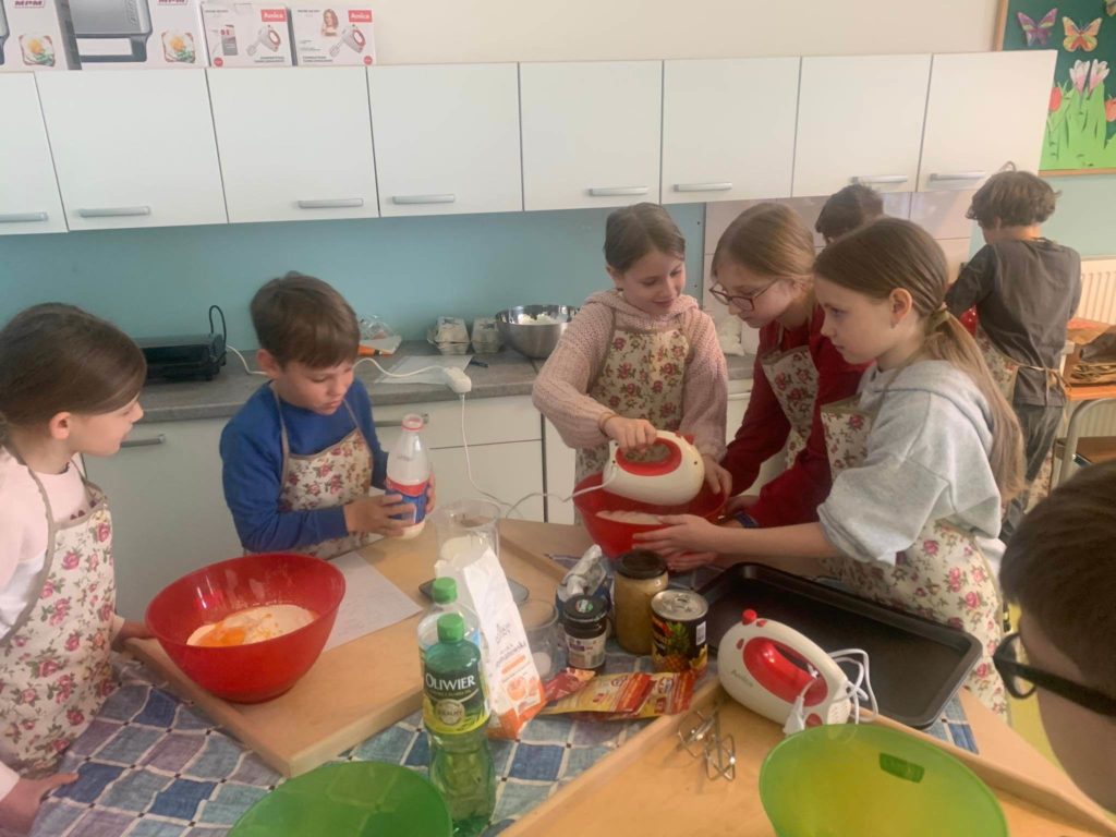 W ramach 13 edycji projektu prozdrowotnego „Zdrowo jem, więcej wiem!” w świetlicy szkolnej odbyły się zajęcia kulinarne. Dzieci z pomocą wychowawców przygotowywały gofry z bitą śmietaną, ananasem oraz pieczonym jabłkiem. 😋🍍🍎