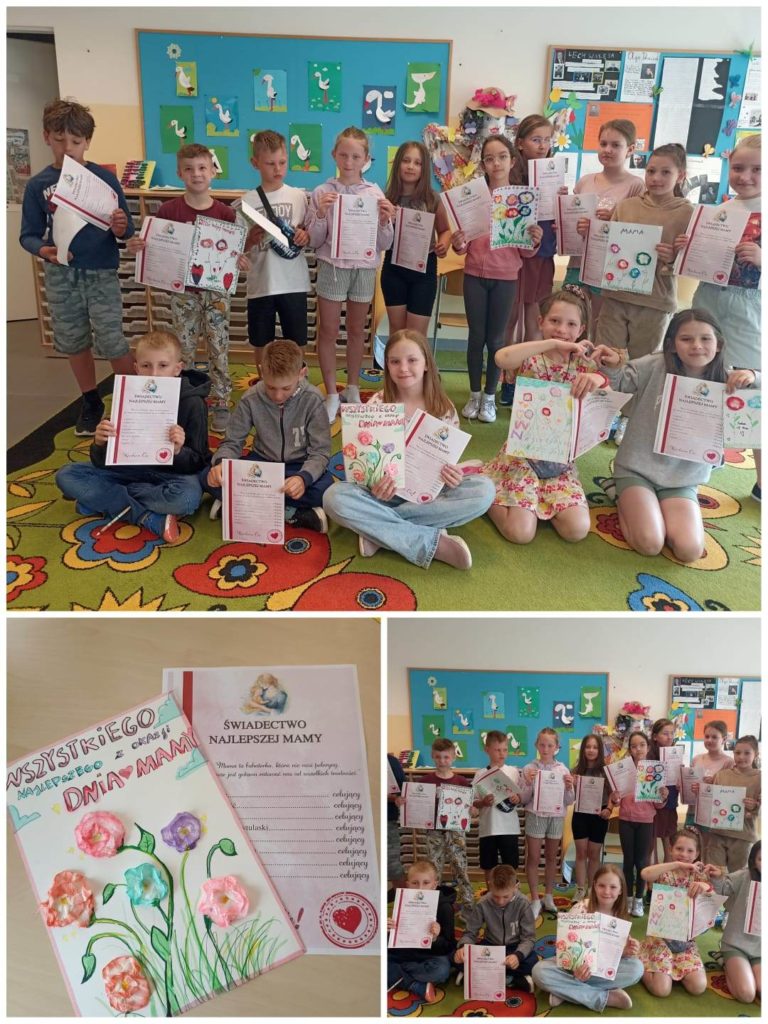 Uczniowie klasy 3A przygotowali piękne laurki dla swoich mam. Dodatkowo, każde dziecko wręczyło mamie świadectwo z czerwonym paskiem, symbolizujące docenienie wartościowych cech, które ich mamy wykazują w codziennym życiu💞.
