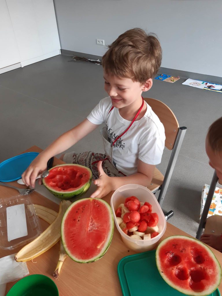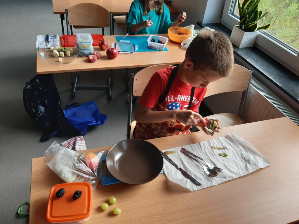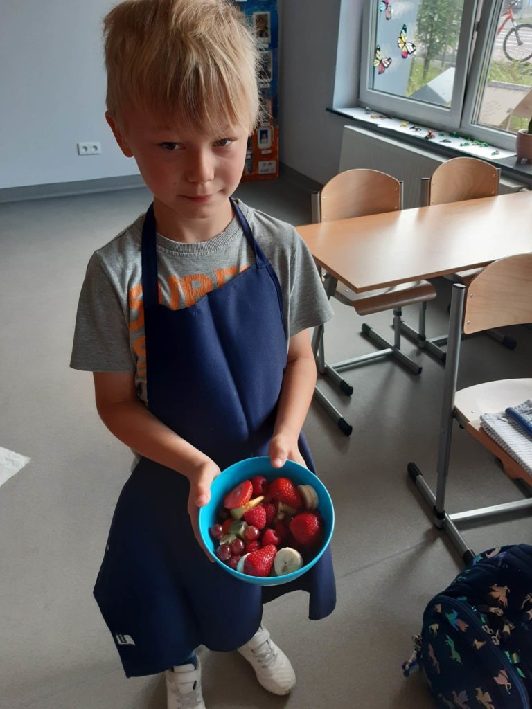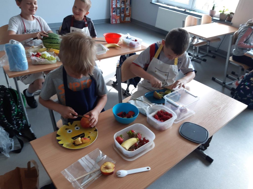 Zdrowe śniadanie jest bardzo ważne i nasi uczniowie dobrze o tym wiedzą, dlatego samodzielnie wykonali swoje sałatki owocowe.