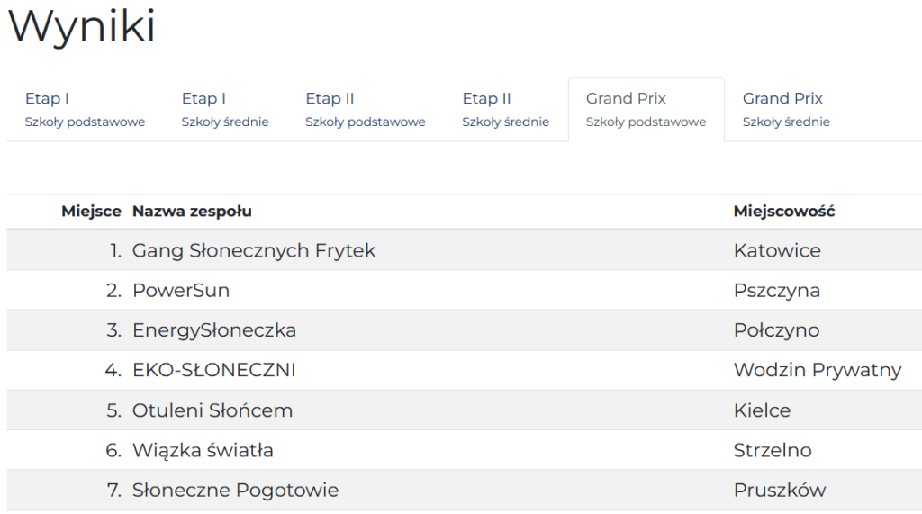 Uczniowie klas 8 naszej szkoły brali udział w całorocznym ogólnopolskim konkursie „Postaw na Słońce”. Jako zespół SŁONECZNE POGOTOWIE wywalczyli 7 miejsce w Polsce. Pokonali aż 68 zespołów.