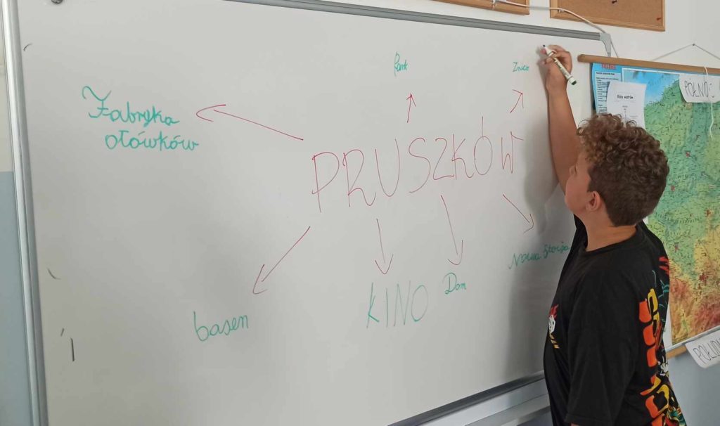 Prezent dla uczniów naszej szkoły od Pana Pawła Makucha Prezydenta Miasta Pruszkowa w postaci kolorowanki, był przyczynkiem do rozmowy z nimi o naszym mieście. Dzieci na zajęciach obejrzały film o tym, jak zmieniało się to miasto przez lata. Poznali wybitne postacie pochodzące z Pruszkowa oraz miejsca warte odwiedzenia. Tworzyli „mapę myśli”, odpowiadali na pytania min. zastanawiając się, jakimi środkami komunikacji możemy dostać się z Pruszkowa do Stolicy, rysowali herb naszego miasta. Na koniec tych ciekawych zajęć zastanawiali się, co by zrobili, gdyby zostali prezydentem Pruszkowa. Odpowiedzi były przeróżne. Warto przytoczyć tu kilka z nich: – „Zbudowałbym Zoo” – „Potrzebny jest Aqua Park” – „Więcej stajni” – „Żeby nie było opłaty za domy i mieszkania” – „Więcej pracowni artystycznych” – „Przeznaczyć więcej pieniędzy na schroniska dla zwierząt” – „Zbudować hotel dla biednych ludzi”. Jak widać młodzi Pruszkowiacy są wrażliwi i pełni pomysłów.