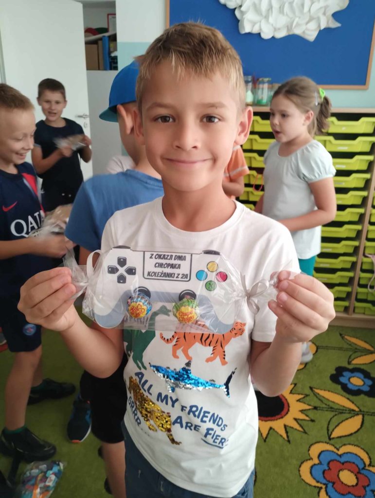 29 września br. obchodziliśmy w naszej szkole Dzień Chłopaka. Uczniowie mieli zaplanowane ciekawe aktywności. Między innymi dziewczynki tworzyły laurki, rozdawały prezenty chłopcom, a cała szkoła przyłączyła się do akcji stworzonej przez Samorząd Uczniowski – dzień krawata. Dzieci przyszły tego dnia w krawatach lub muszkach, aby wspólnie świętować Dzień Chłopaka.