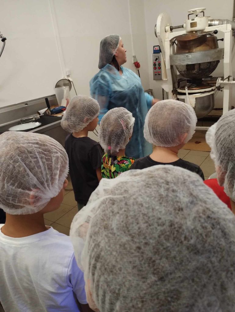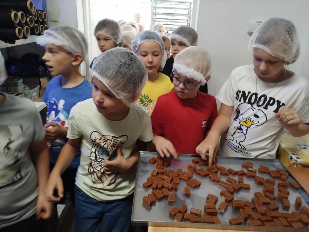 29 września br. klasa 1E i 2A wybrały się na wycieczkę do fabryki krówek w Milanówku. Nasza przygoda rozpoczęła się od fascynującej prezentacji na temat historii i procesu wytwarzania krówek. Dzieci dowiedziały się, że każdy krok produkcji jest precyzyjnie kontrolowany, aby zapewnić doskonałą jakość produktów. Następnie zaplanowane było zwiedzanie fabryki. Uczniowie mogli z bliska obserwować maszyny w akcji, które formowały i smarowały krówki. Uczestnicy wycieczki nie mogli oderwać się od tego widowiska. Oprócz tego była możliwość skosztowania świeżo wyprodukowanych krówek, a ich smak był absolutnie cudowny! Na zakończenie wizyty każde dziecko otrzymało małe słodkie upominki od fabryki. To był naprawdę wyjątkowy dzień pełen nauki i smakowania pysznych krówek.