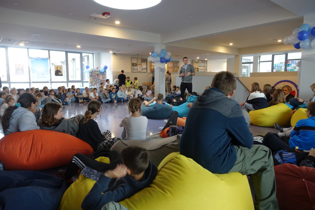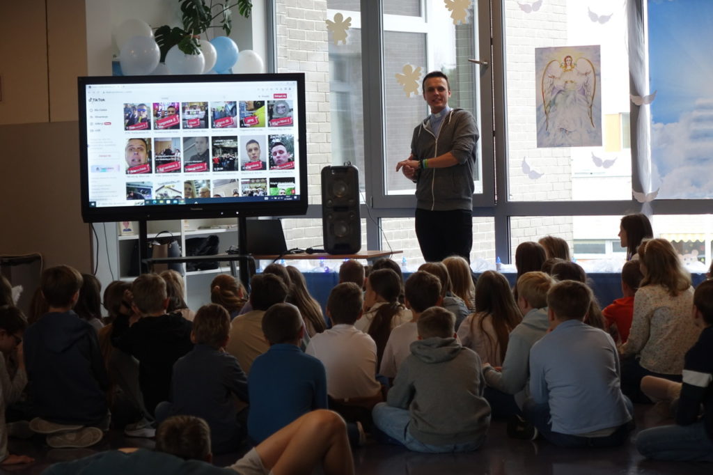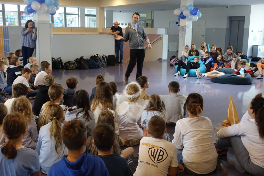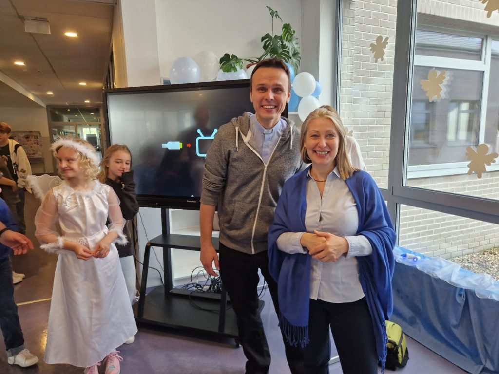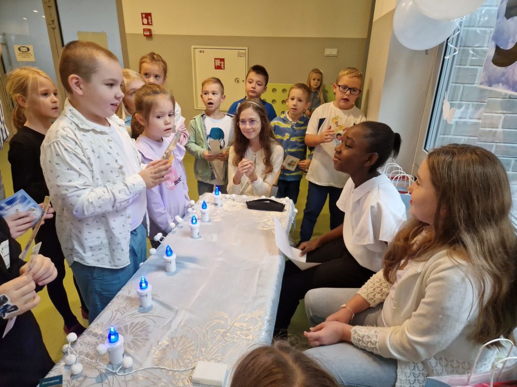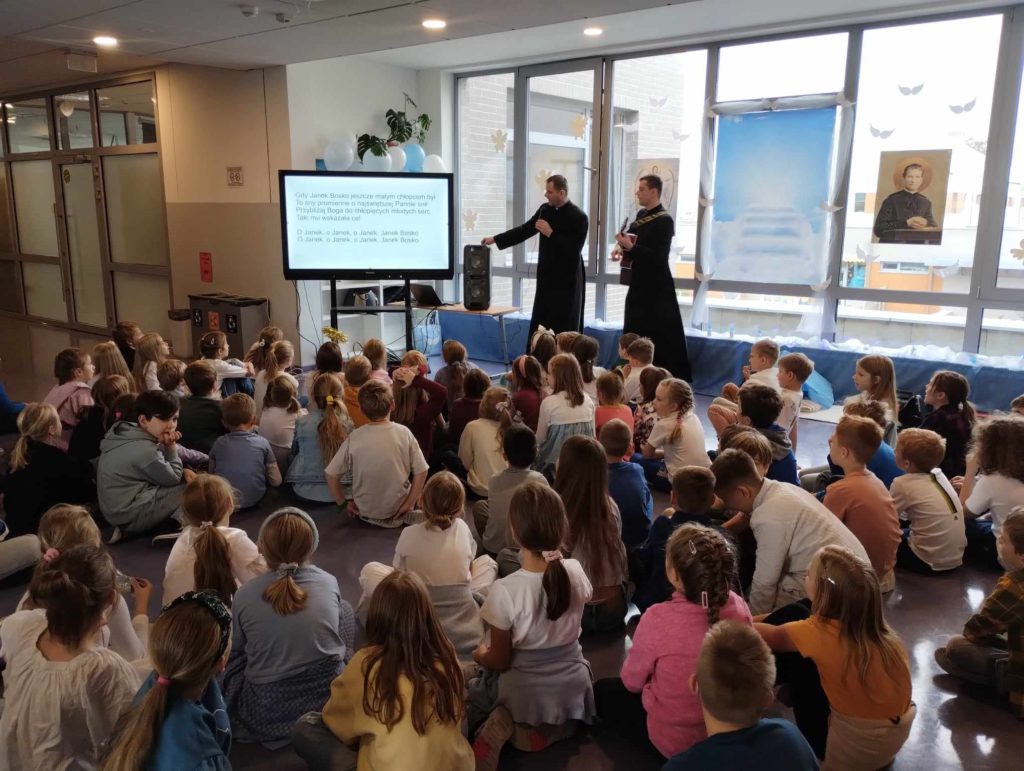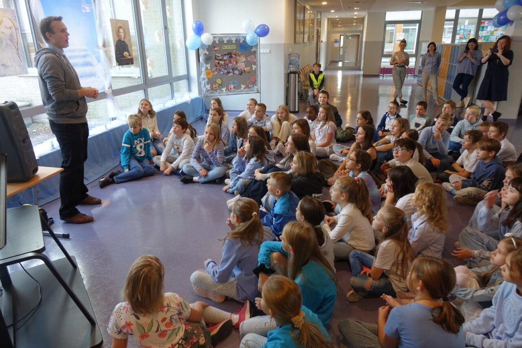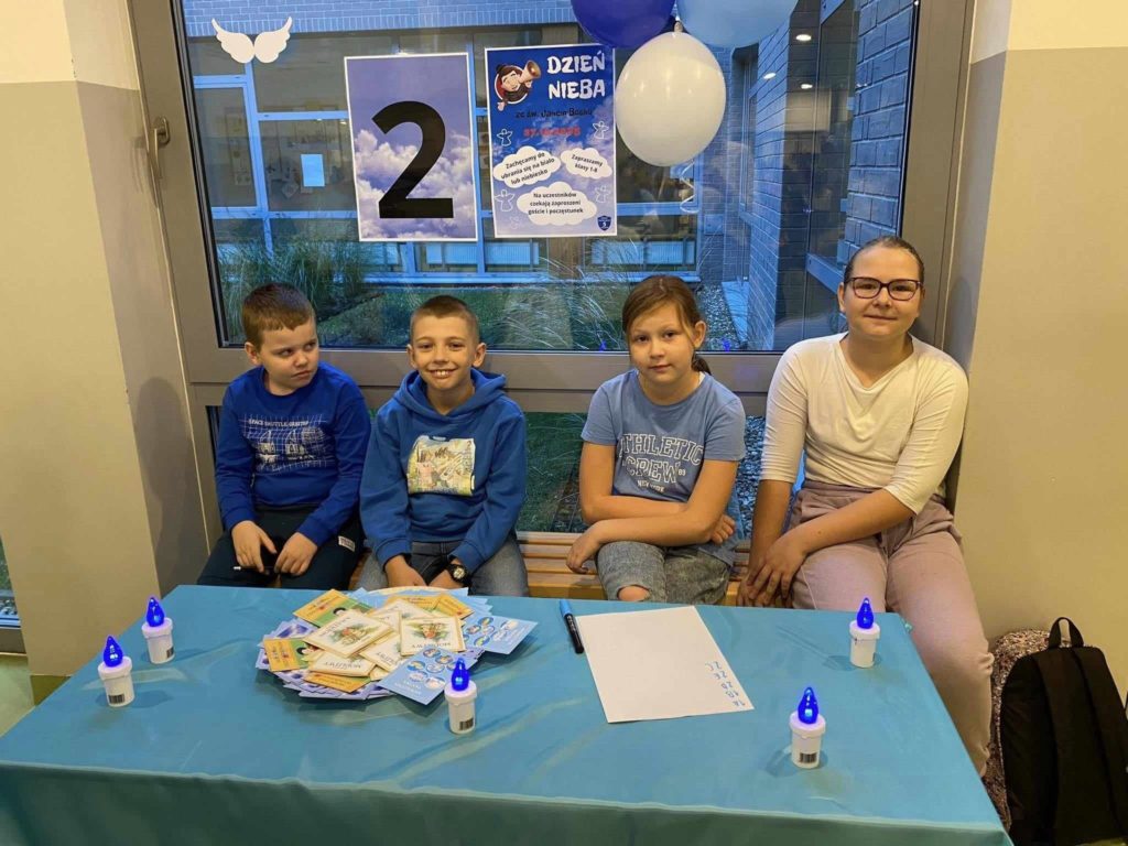 27 października 2023 r. już po raz 4 odbył się w naszej szkole Dzień Nieba nawiązujący do Uroczystości Wszystkich Świętych. Patronem tegorocznego wydarzenia był utalentowany włoski Święty – Jan Bosko, zwany Ojcem i Przyjacielem dzieci i młodzieży. Najważniejszym punktem akcji było spotkanie uczniów z wyjątkowymi gośćmi z ks. Rafałem Główczyńskim znanym jako Ksiądz z Osiedla oraz z księdzem salezjaninem Pawłem Rudnickim z Warszawy z klerykiem. Na młodszych uczniów czekały stanowiska z zadaniami rozwijającymi różne talenty oraz stanowisko „Iluzjonisty”, w którego wcielił się Jakub Kozłowski – uczeń z klasy 5A. Bardzo dziękujemy uczniom z klasy 2A, 5A, 6A oraz 8A, którzy w sposób kreatywny i odpowiedzialny wsparli organizację całej akcji. Dziękujemy wszystkim uczniom i nauczycielom za wspaniały czas i już dziś zapraszamy na następny Dzień Nieba.