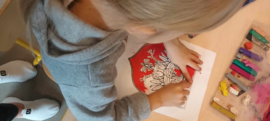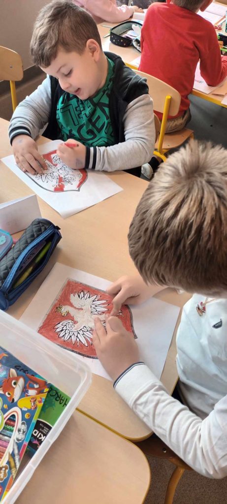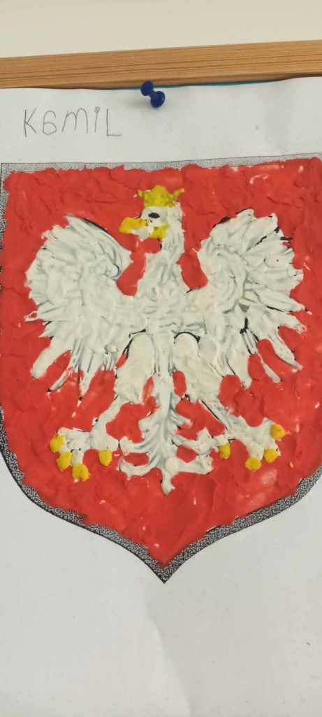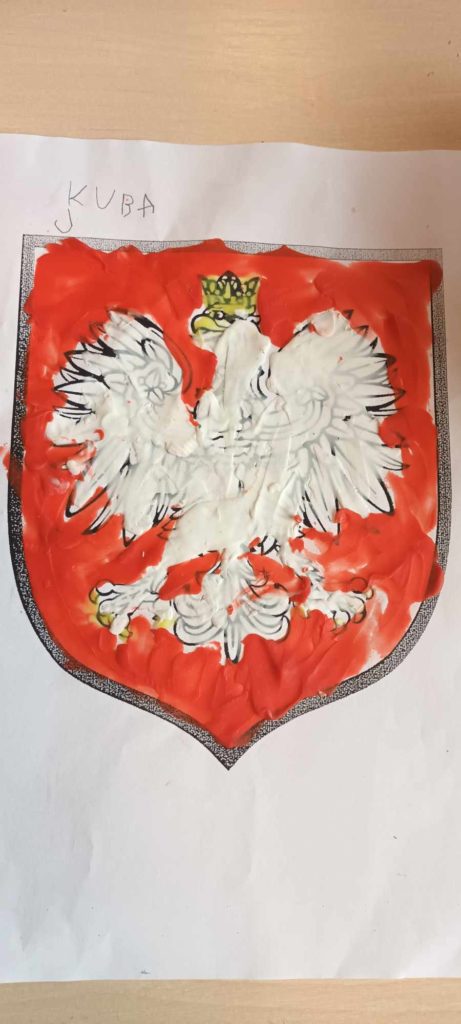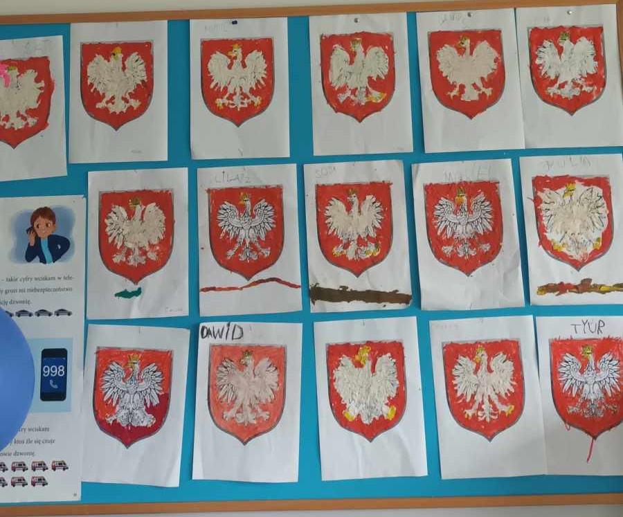 Z okazji zbliżającego się Narodowego Święta Niepodległości uczniowie klasy 0A wykonali przepiękne prace plastyczne przedstawiające Godło Polski. Rozmawiali nt. Ojczyzny, stolicy Polski oraz ćwiczyli śpiewanie Hymnu Narodowego.