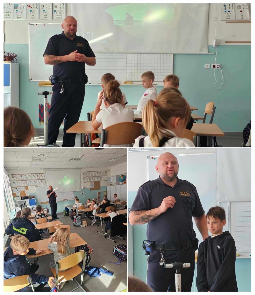 W naszej szkole koniec października oraz początek listopada zostały poświęcone profilaktyce. Uczniowie klas młodszych mieli okazję spotkać się z przedstawicielami Straży Miejskiej. Na zajęciach warsztatowych poruszany był głównie temat kontaktu z nieznajomymi i sposobów radzenia sobie w takich sytuacjach. Serdecznie dziękujemy pruszkowskiej Straży Miejskiej za te wspaniałe i bardzo ważne lekcje bezpieczeństwa.