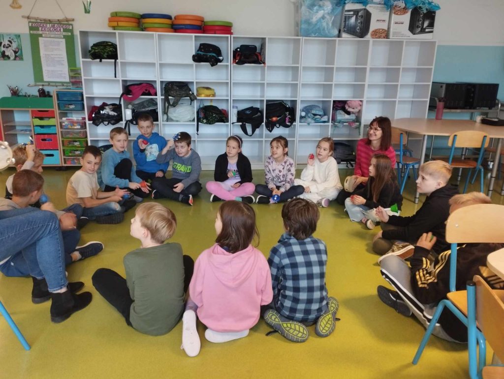Uczniowie na zajęciach muzycznych w świetlicy uczą się tekstów piosenek i grają na instrumentach. To twórczy czas, który nie tylko rozwija ich umiejętności, ale także wzmacnia więzi między nimi poprzez wspólne muzyczne doświadczenia.