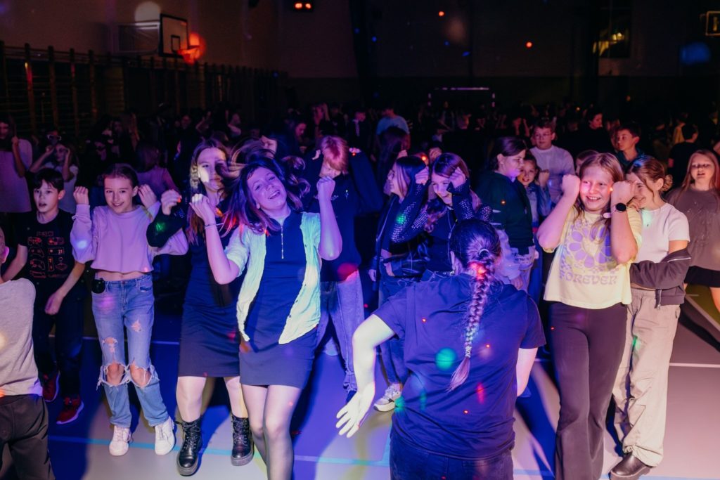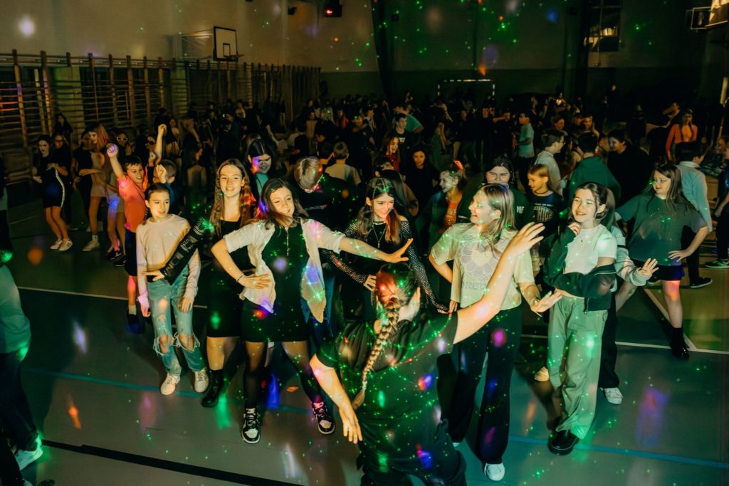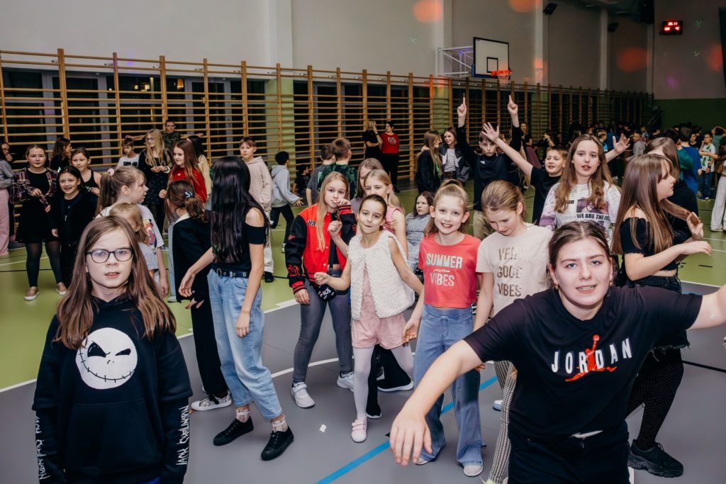 30.11.2023 r. odbyła się szkolna dyskoteka. DJ puszczał same gorące hity, więc parkiet taneczny szybko się rozgrzał. Sala gimnastyczna na 2 godziny zamieniła się w prawdziwą dyskotekę – światła, dymy i efekty laserowe stworzyły imprezowy klimat. Ze sceny co chwilę płynęły dedykacje i pozdrowienia dla uczniów i nauczycieli. Wisienką na torcie był wybór Króla i Królowej Balu. Konkurs taneczny wyłonił zwycięzców – Gabrysię i Franka. Dziękujemy Samorządowi Uczniowskiemu za organizację dyskoteki, Radzie Rodziców za sprzęt i DJ’a, wszystkim uczestnikom za niesamowitą zabawę. Do zobaczenia na następnej imprezie!