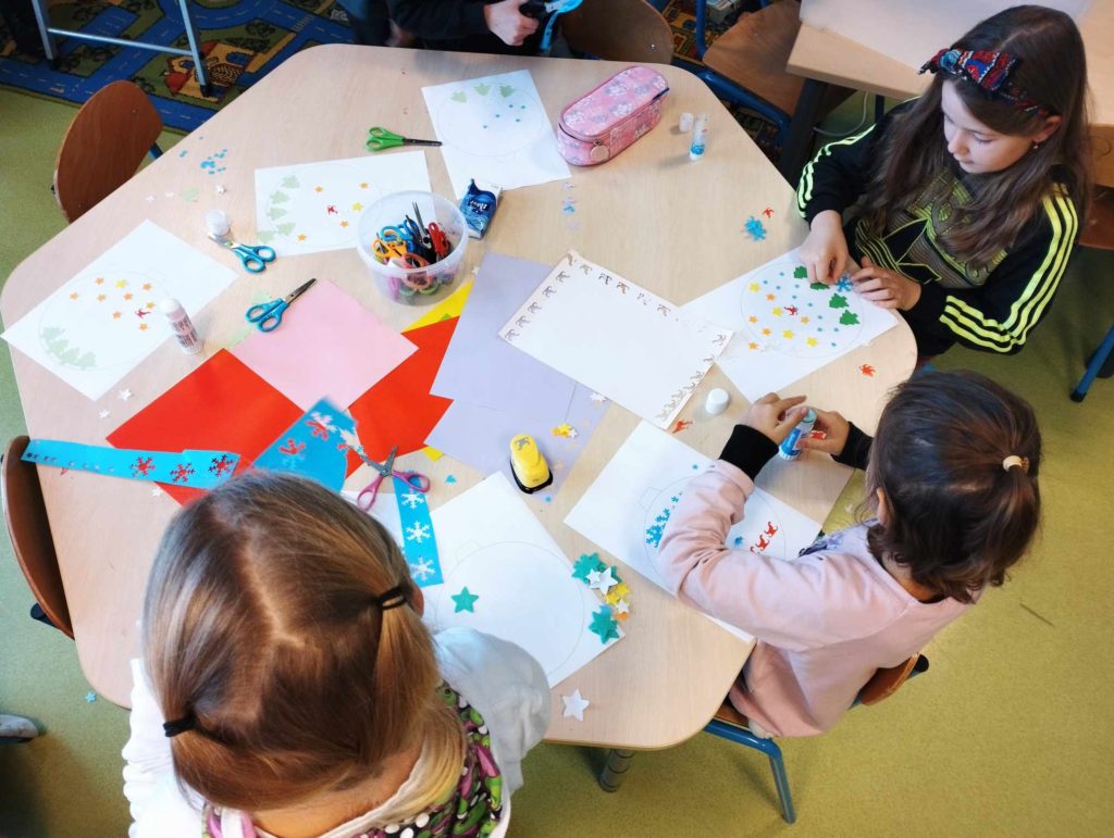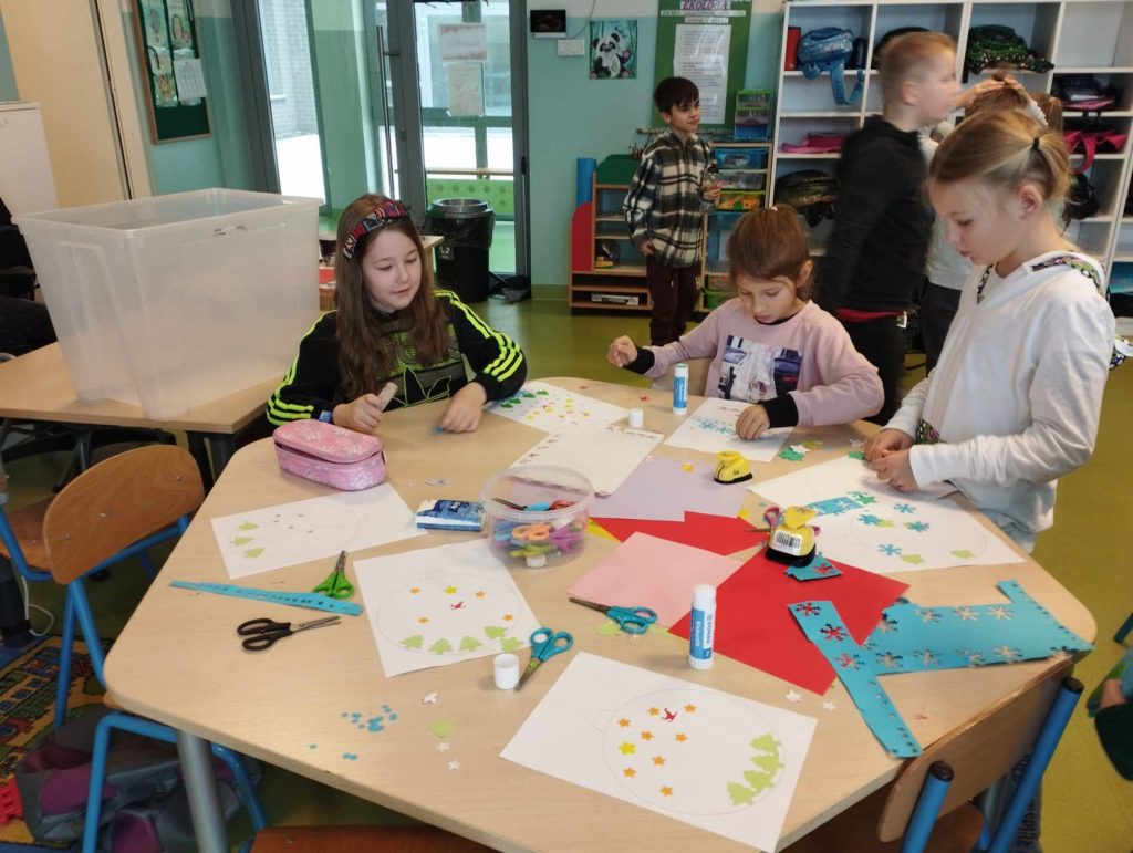 Uczniowie ze świetlicy wkładają serce w tworzenie ozdób świątecznych. Magia świąt rozkwita w ich rękach.