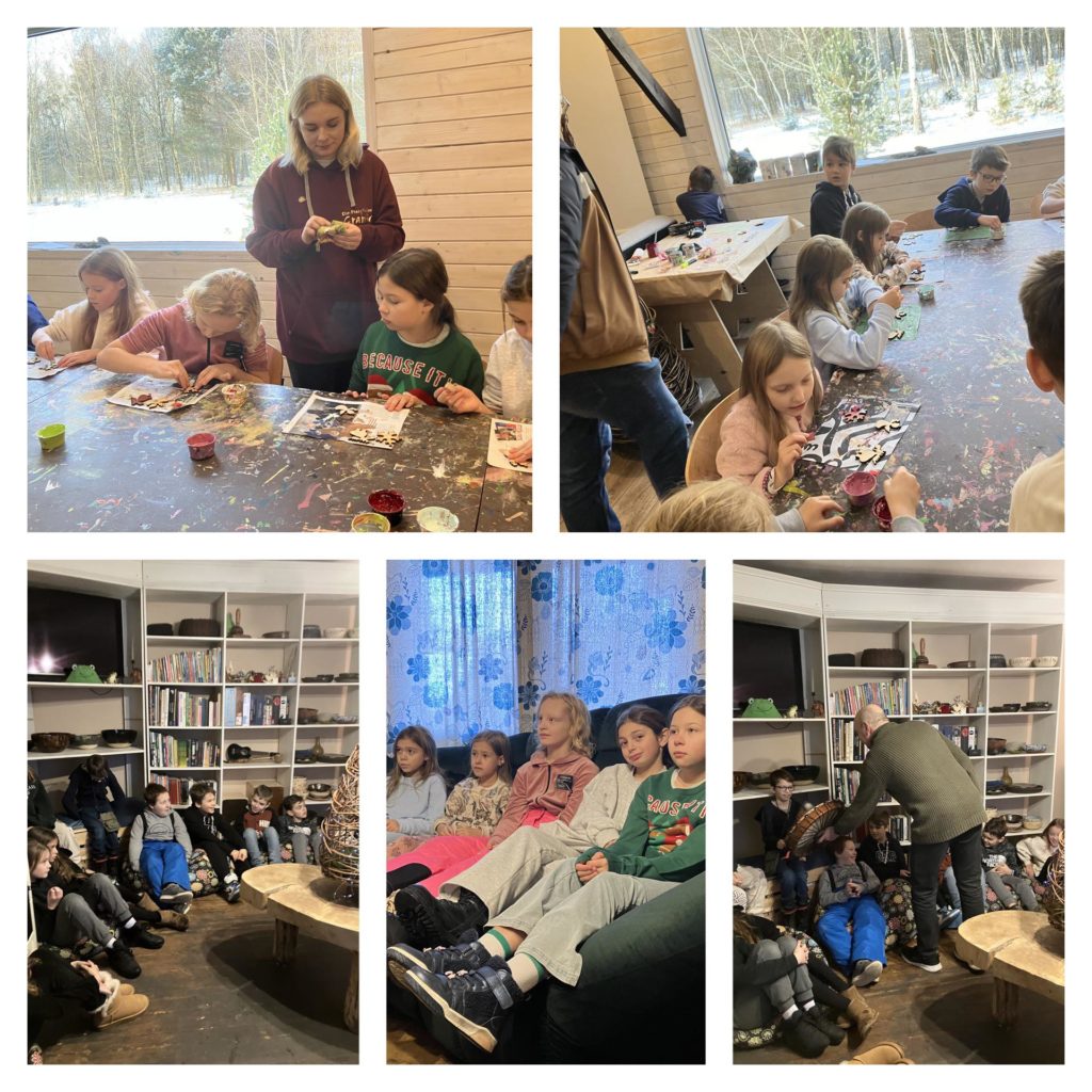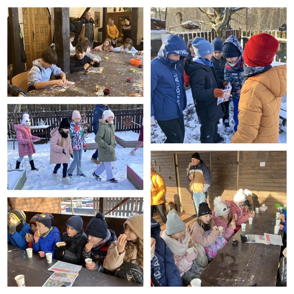 5 grudnia 2023 roku uczniowie klas 3C, 3D i 4C wybrali się na wycieczkę do Domu Pracy Twórczej „Granica” w Kampinoskim Parku Narodowym. Podczas pobytu w ośrodku edukacyjnym dzieci uczestniczyły między innymi w warsztatach tappingu, polegających na tworzeniu ozdób choinkowych z naturalnego drewna. Po wykonaniu dekoracji nadszedł czas aktywności kulinarnych, w trakcie których nasi wychowankowie własnoręcznie przygotowali mieszankę z przypraw korzennych. Program wycieczki przewidywał również takie atrakcje jak: poznanie przez uczniów właściwości dźwięków i brzmienia instrumentów takich jak bęben, gong i trąbka; rywalizację grup podczas śpiewania kolędy „Przybieżeli do Betlejem”; poszukiwanie wybranych eksponatów z użyciem map w ramach gry terenowej „Piękno ukryte w szczególe”. Na koniec zaplanowany został poczęstunek – pyszne kiełbaski z grilla oraz ciepła, owocowa herbata. Ta integracyjna wyprawa z pewnością pozostawi wiele dobrych wspomnień w naszej pamięci.