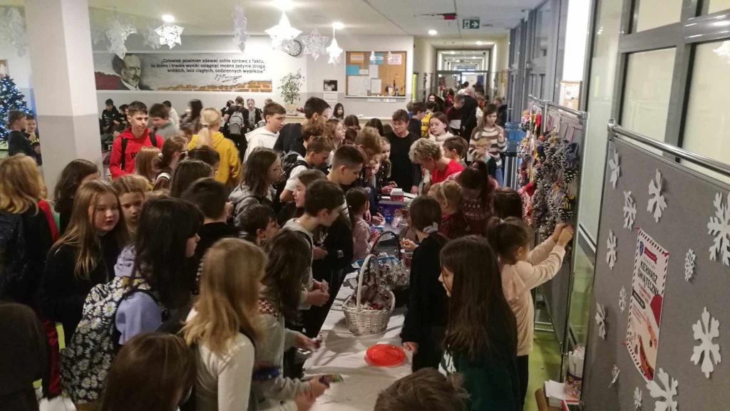 W naszej szkole odbył się kiermasz świąteczny, na którym można było zaopatrzyć się w upominki, dekoracje oraz liczne smakołyki. Wydarzenie cieszyło się dużą popularnością i sprawiło uczniom wiele radości.