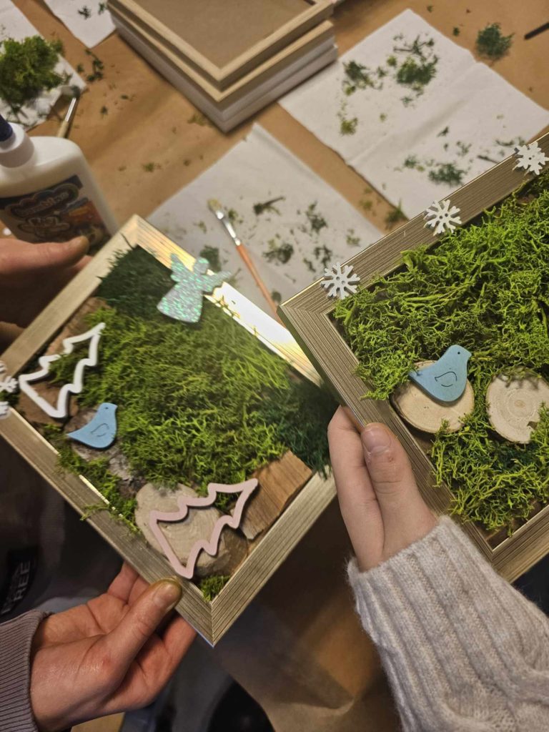 „Świąteczny obraz w mchu” to temat grudniowych warsztatów, w których wzięło udział ponad 70 uczniów naszej szkoły. W przedświąteczny klimat wprowadziła uczniów Pani Sylwia Żebrowska z Dziecięcego Uniwersytetu. Poniżej prezentujemy efekty pracy naszych uczniów: