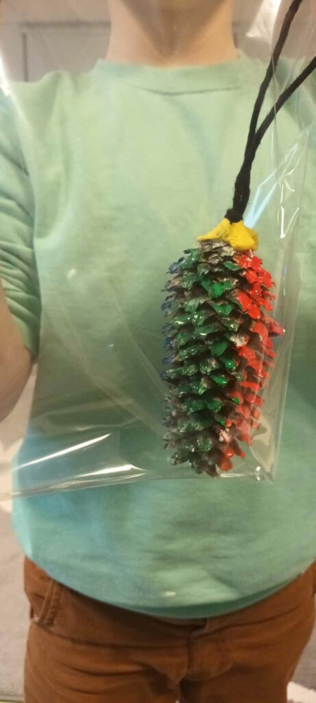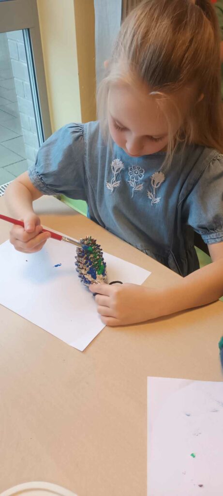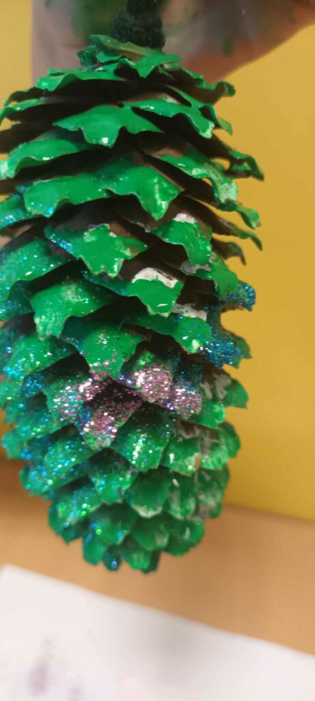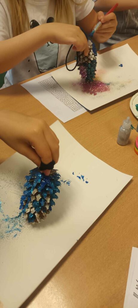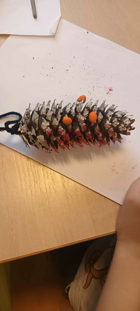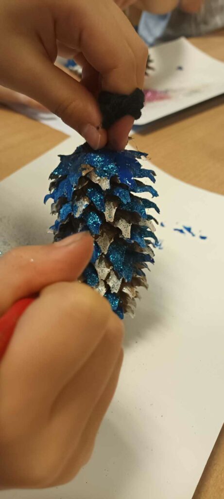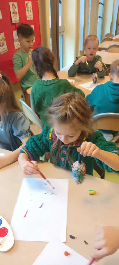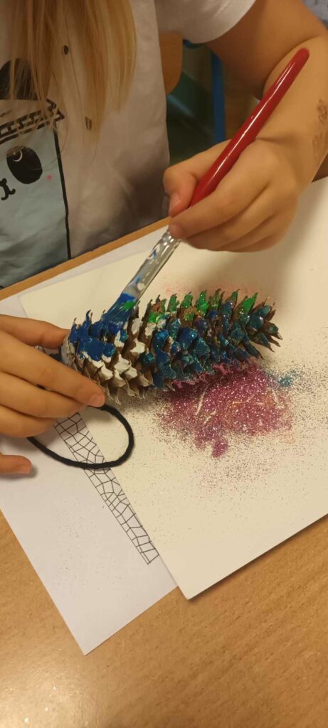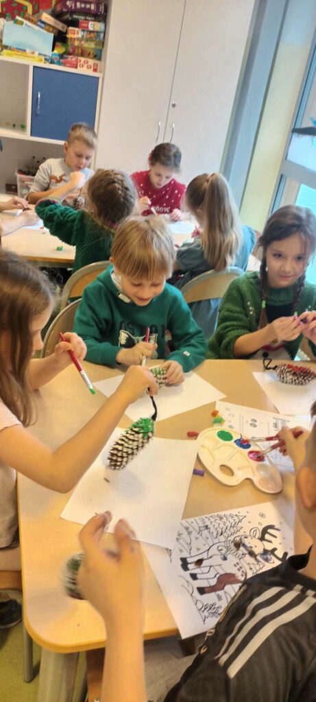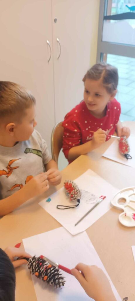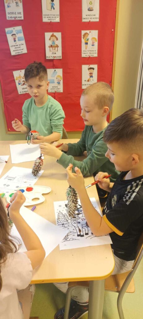 To ostatni dzwonek na wykonanie ozdób choinkowych. W świetlicy dzieci wykonały zawieszki z szyszek, które pięknie ozdobią świąteczne drzewka.