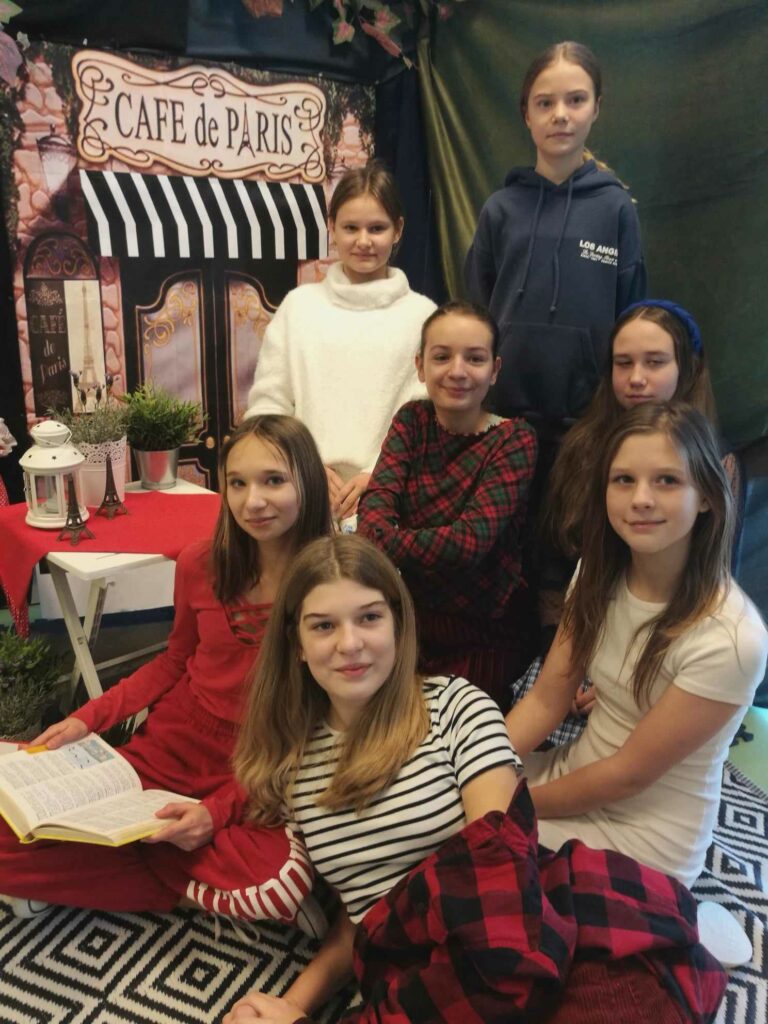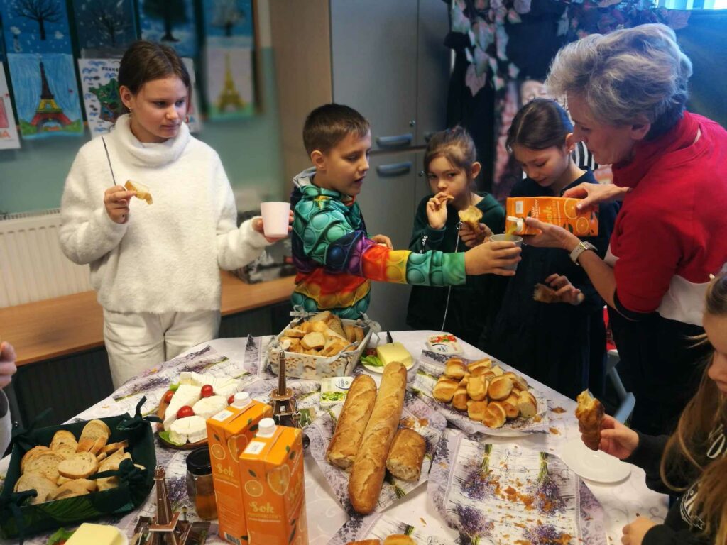 9 stycznia br. w świetlicy od rana czekała na dzieci niespodzianka. Z okazji zakończenia pierwszego semestru koła językowo-plastycznego postanowiliśmy przygotować francuskie śniadanko w „Café de Paris”. Dodatkowo, zaproszone uczennice klasy szóstej (uczęszczające na środowe zajęcia „Z językami za pan brat”) zaśpiewały nam francuską, zwycięską piosenkę z Eurowizji Junior 2023 pt. „Coeur”. Było smacznie i przyjemnie. W drugim semestrze zaprzyjaźnimy się z językiem hiszpańskim.
