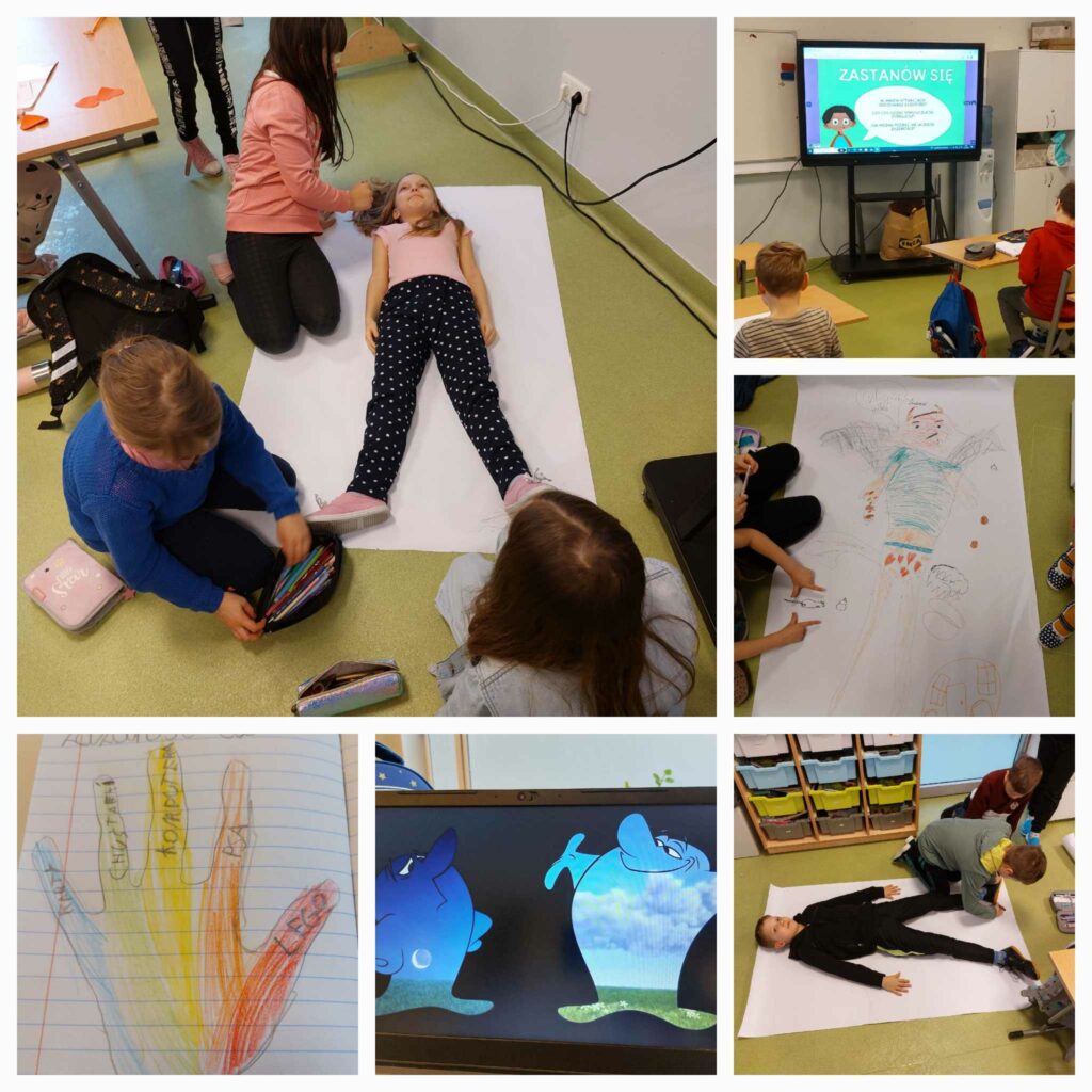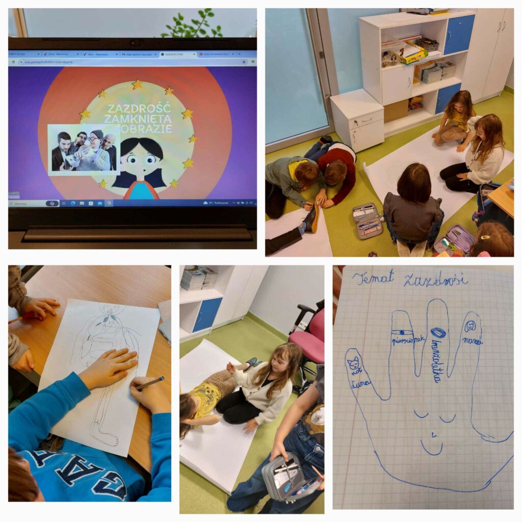 Uczniowie na zajęciach z etyki rozmawiali o zazdrości. Zastanawiali się, kiedy ją czują, co nam ona daje, a co odbiera. Rysowali „Wielkich Ludzi Zazdrości”, a także dłonie, na które wpisali to, czego inni mogliby im zazdrościć. Oglądali też film o tej tematyce, a następnie go analizowali.
