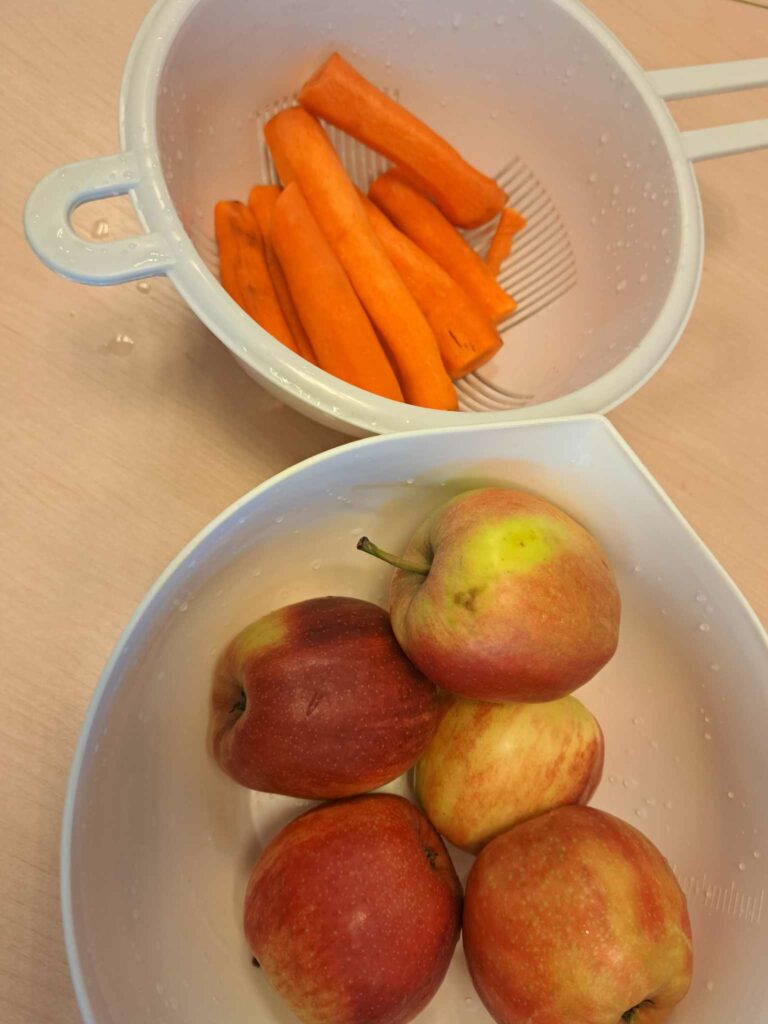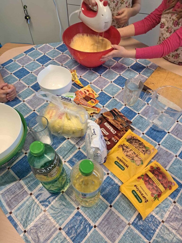 Dzisiaj dzieci w świetlicy miały przyjemność przyrządzić ciasta: marchewkowe i jabłkowe. Każdy uczestnik koła kulinarnego chciał wziąć udział w pieczeniu pyszności, które (sądząc po zapachu) smakowały wyśmienicie. ![]()