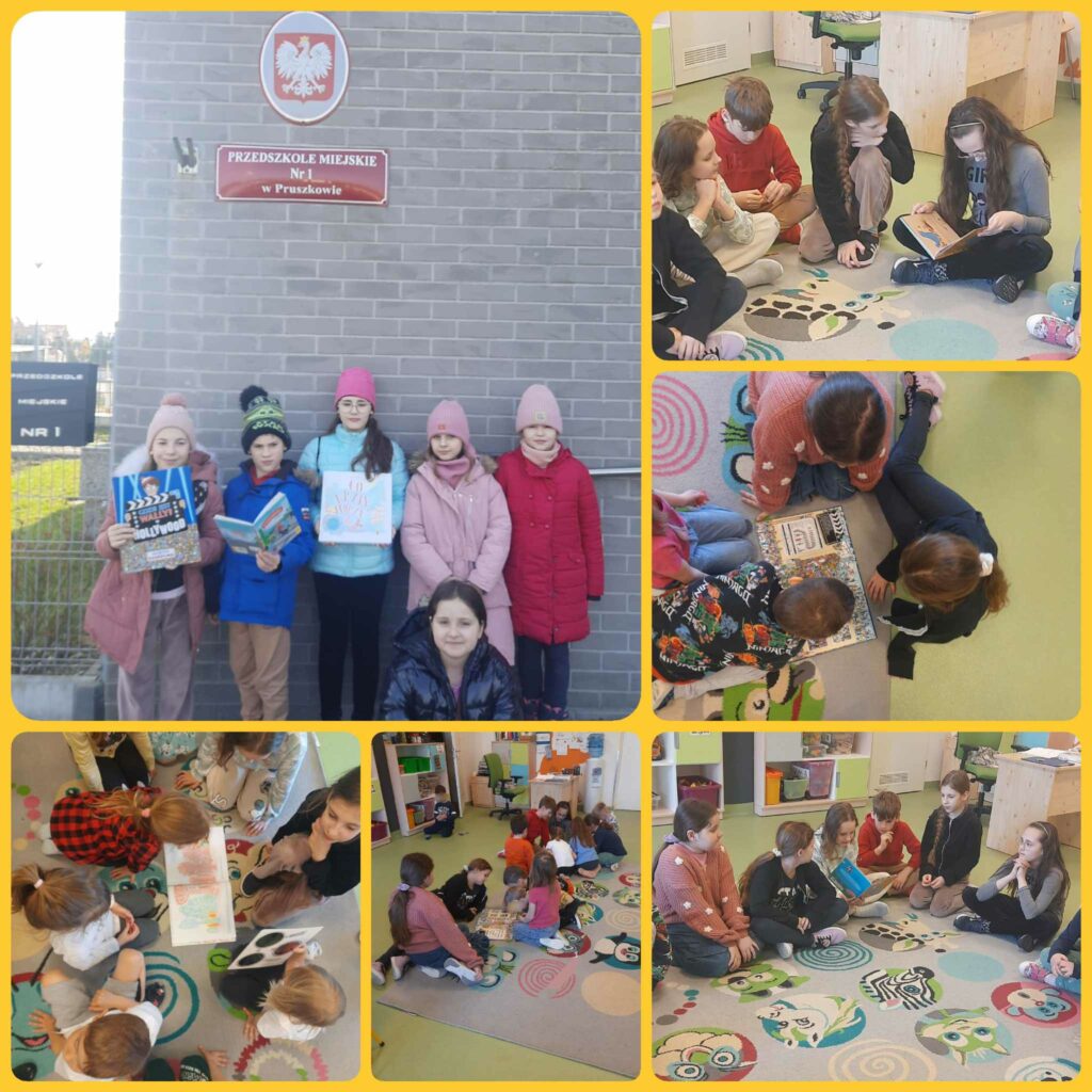 Wychowankowie z ogromnym zainteresowaniem słuchali czytanych utworów i bezbłędnie odpowiadali na pytania, dotyczące wysłuchanych treści. Serdecznie dziękujemy przedszkolakom za miłe przyjęcie.