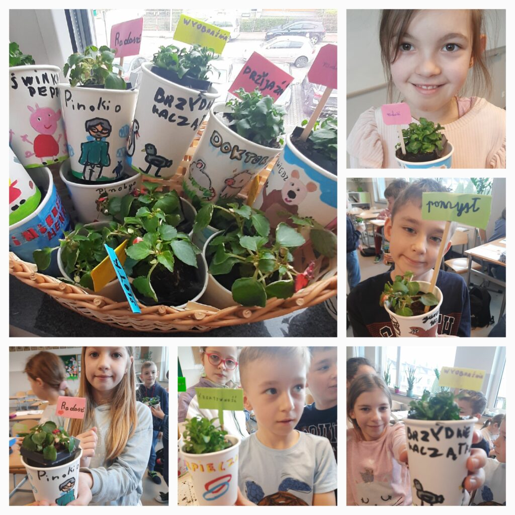 Uczniowie klasy 3a oraz oddziałów przedszkolnych w ramach tej akcji wysiali nasionka różnych roślin, a następnie wykonali osłonki na doniczki ozdobione przepięknymi ilustracjami do ulubionych książek.
