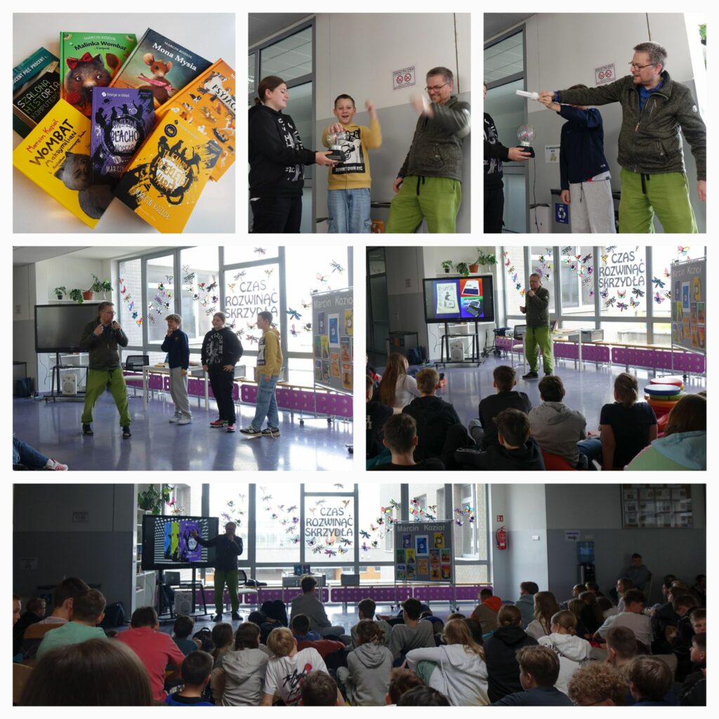 18 kwietnia 2024 roku w naszej szkole gościł pan Marcin Kozioł, pisarz i podróżnik, autor powieści dla dzieci i młodzieży – m.in. lektury szkolnej dla klas 4-6 – pt.: „Skrzynia Władcy Piorunów” i jej dwóch kontynuacji: „Tajemnicy przeklętej harfy” oraz „Gwiazdy Blachonosego”.