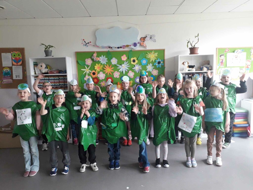 Z tej okazji odbył się w naszej szkole ekologiczny pokaz mody, w czasie którego, uczniowie klas 0-3 mogli zaprezentować samodzielnie wykonane stroje z surowców wtórnych. W czasie zajęć lekcyjnych rozmawialiśmy o tym, że wspólne dbanie o środowisko, w którym żyjemy, powinno być naszym priorytetem.
