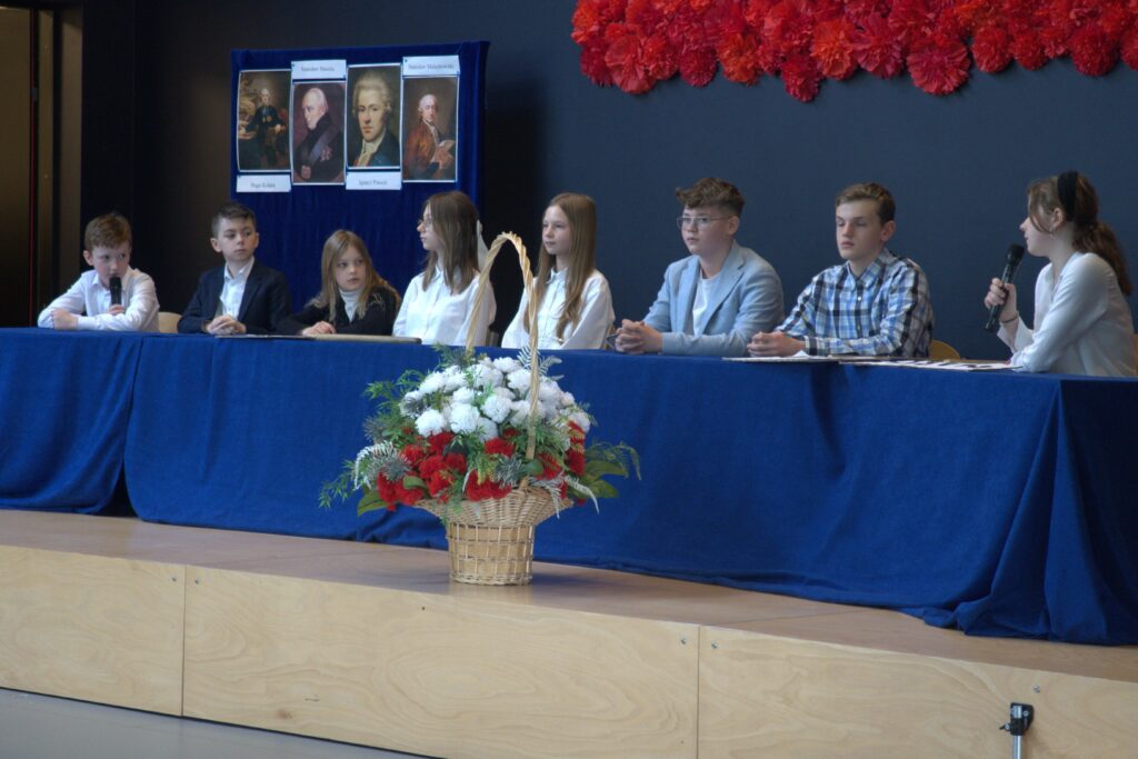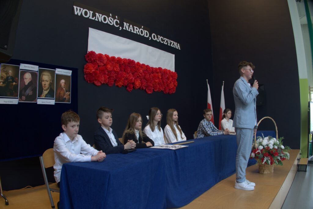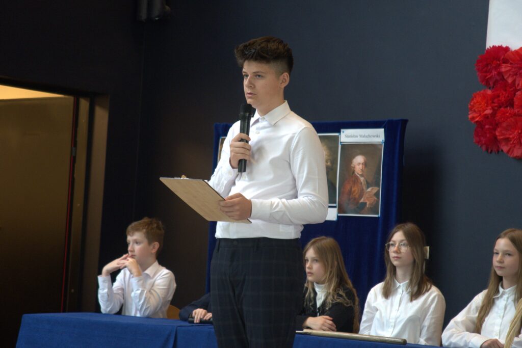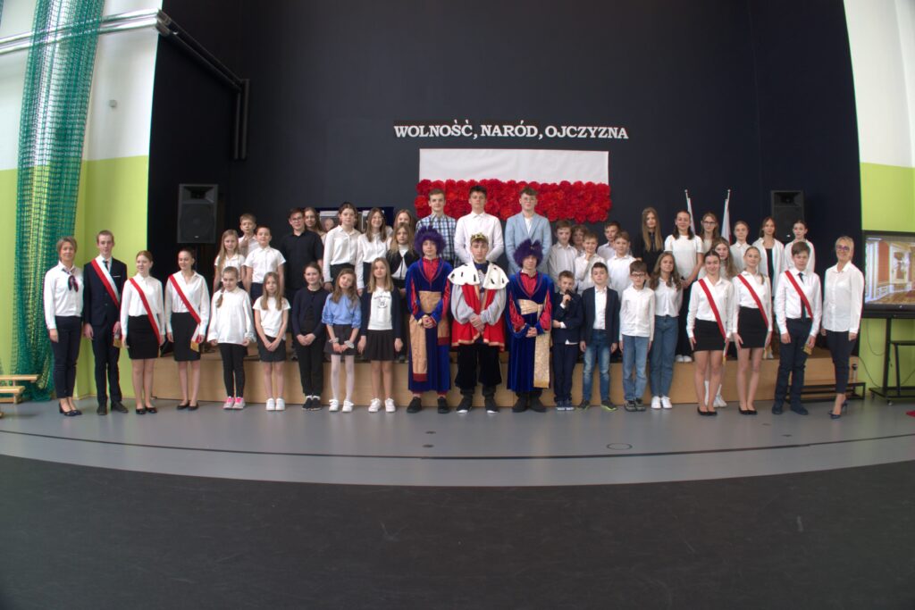 Apel uświetniły wypożyczone na tę okazję stroje szlacheckie z epoki króla Stanisława Augusta Poniatowskiego, o których więcej informacji uczniowie otrzymali od obecnej na wydarzeniu pani dyrektor Aleksandry Kurtz.
