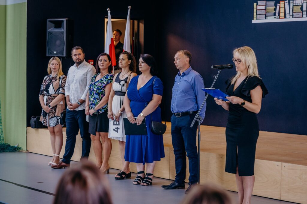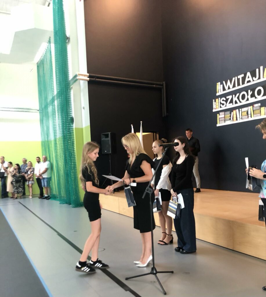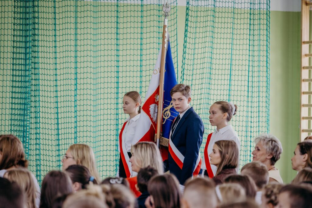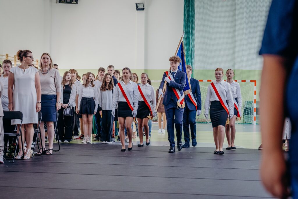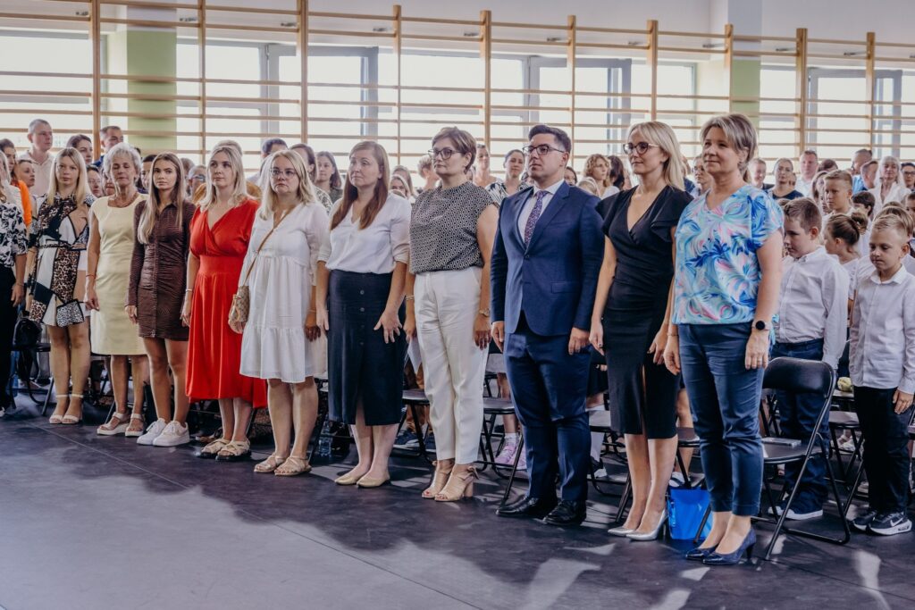 Uroczyste wprowadzenie sztandaru szkoły i odśpiewanie hymnu państwowego były dla naszych uczniów symbolem rozpoczęcia nowego roku szkolnego. Pani Dyrektor Aleksandra Kurtz podczas przemówienia powitała wszystkich zgromadzonych na uroczystości oraz życzyła, aby nowy rok szkolny był dla wszystkim czasem rozwoju pasji i zainteresowań.