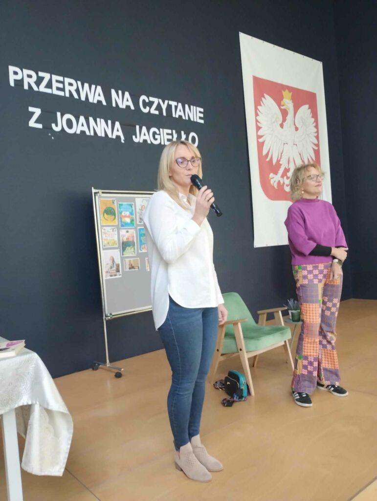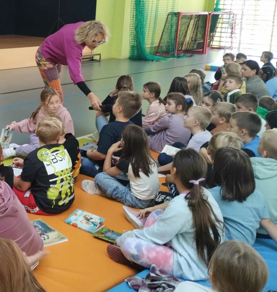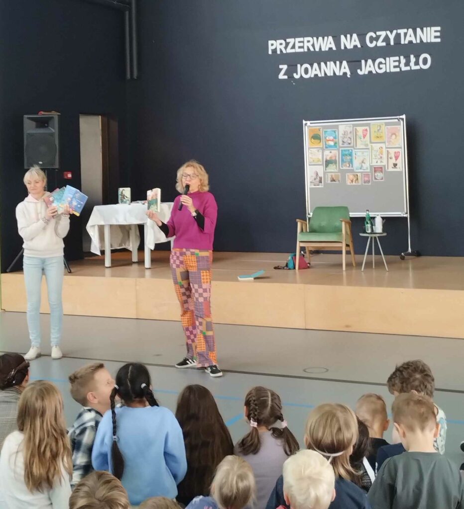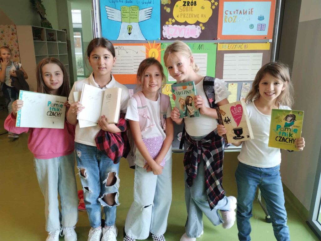Tego dnia chętni uczniowie uczestniczyli w spotkaniu autorskim z pisarką Joanną Jagiełło, podczas którego dowiedzieli się na czym polega praca pisarza i otrzymali odpowiedzi na nurtujące ich pytania, dotyczące twórczości autorki. Najmłodszym uczniom głośno czytała młodzież z klas 8A i 8B oraz 6D. Do akcji dołączyli się również nauczyciele, czytając uczniom swoje ulubione książki podczas przerw w bibliotece szkolnej. Uczniowie z klasy 3A udali się do Przedszkola Miejskiego nr 1, gdzie zaprezentowali grupie 6-latków wiersz „Na straganie” Juliana Tuwima.