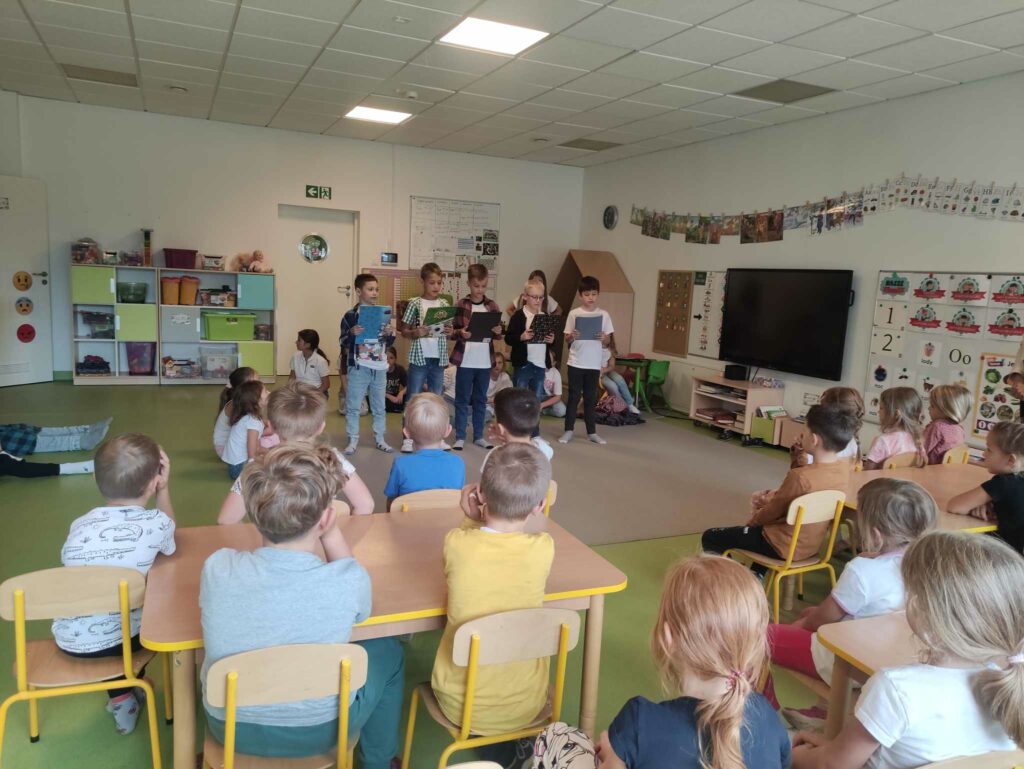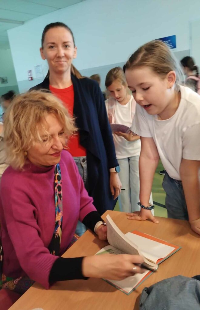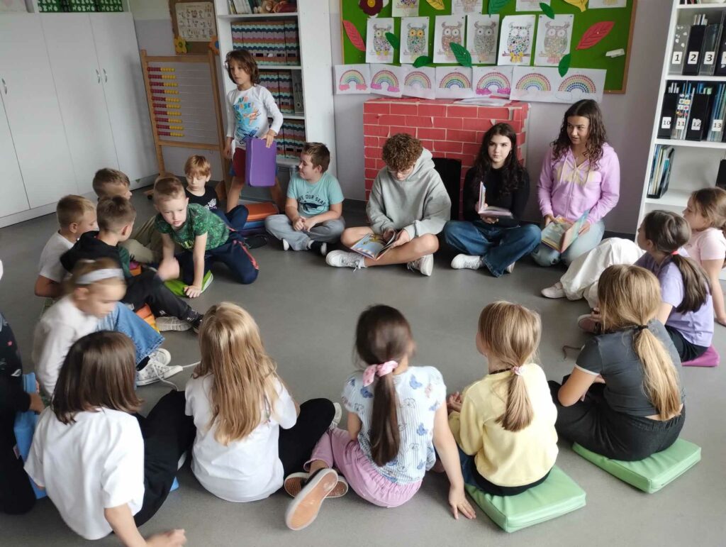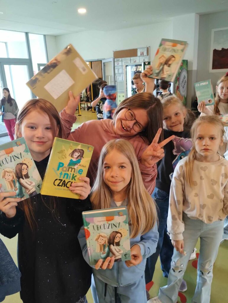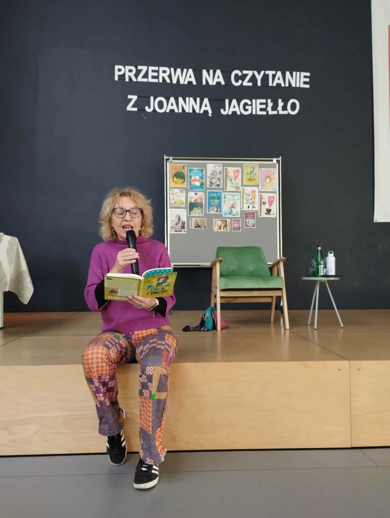 Tego dnia chętni uczniowie uczestniczyli w spotkaniu autorskim z pisarką Joanną Jagiełło, podczas którego dowiedzieli się na czym polega praca pisarza i otrzymali odpowiedzi na nurtujące ich pytania, dotyczące twórczości autorki. Najmłodszym uczniom głośno czytała młodzież z klas 8A i 8B oraz 6D. Do akcji dołączyli się również nauczyciele, czytając uczniom swoje ulubione książki podczas przerw w bibliotece szkolnej. Uczniowie z klasy 3A udali się do Przedszkola Miejskiego nr 1, gdzie zaprezentowali grupie 6-latków wiersz „Na straganie” Juliana Tuwima.