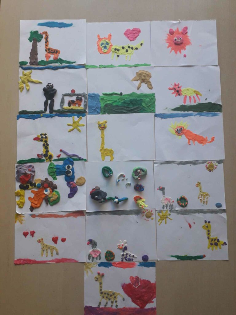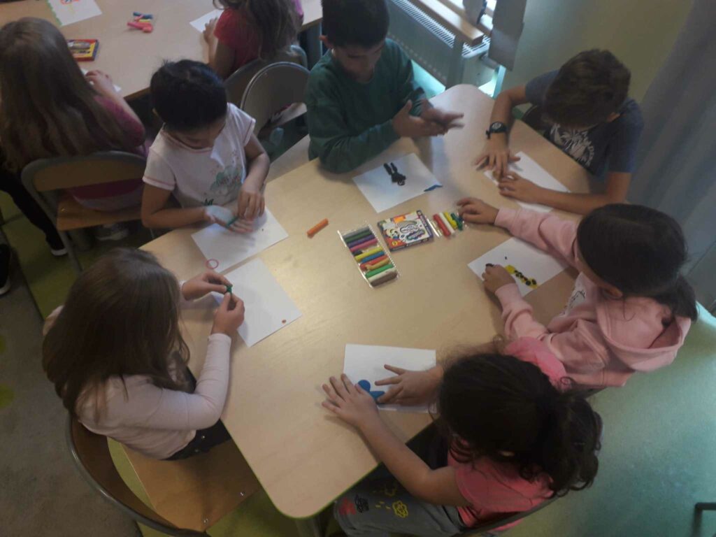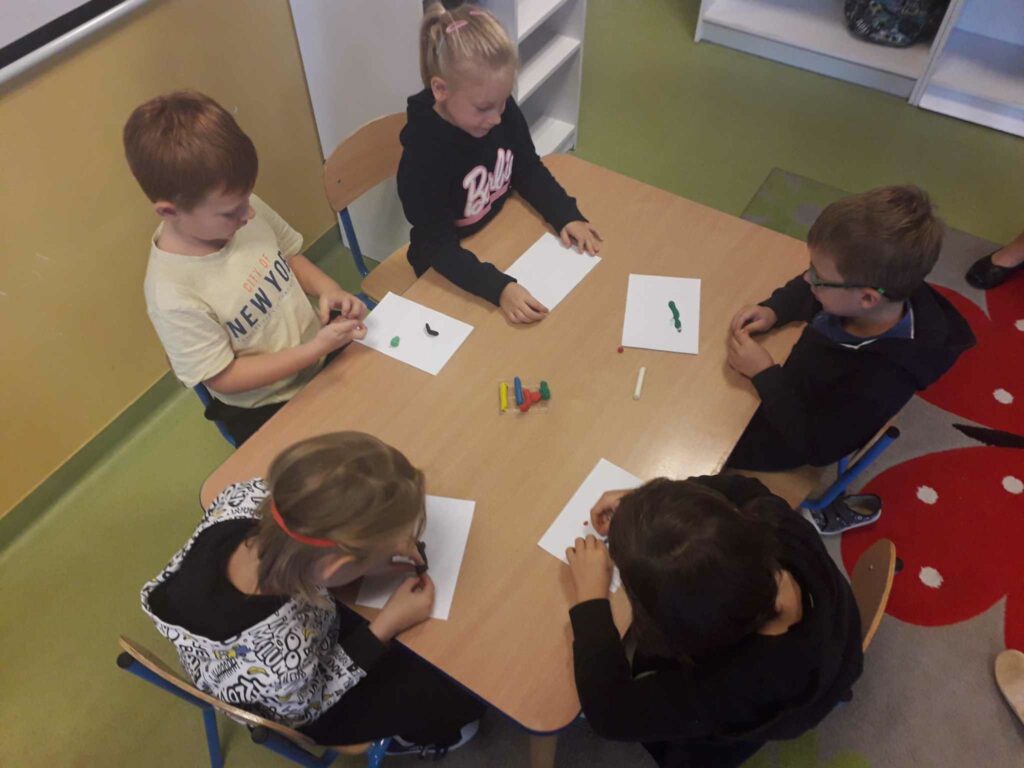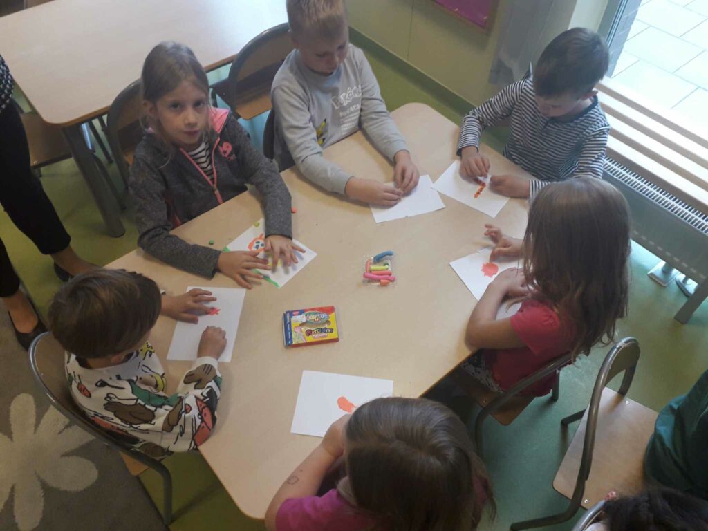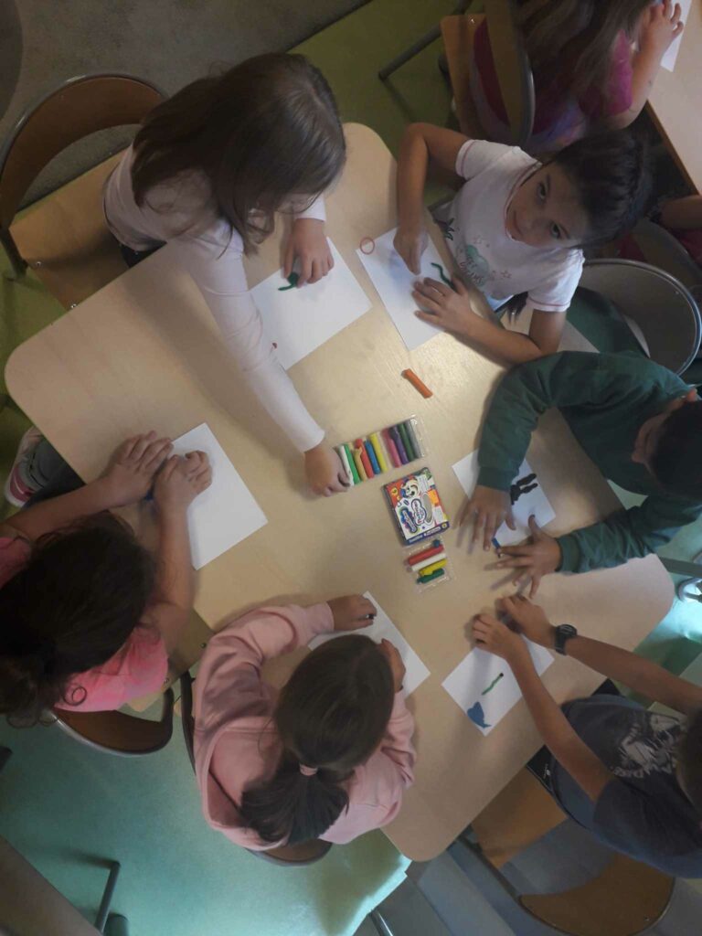 Uczniowie na zajęciach plastyczno-technicznych przedstawiają zwierzęta egzotyczne, poznane podczas świetlicowych zajęć edukacyjnych.