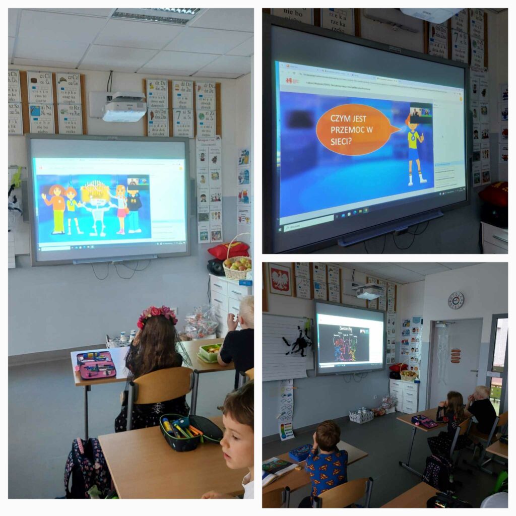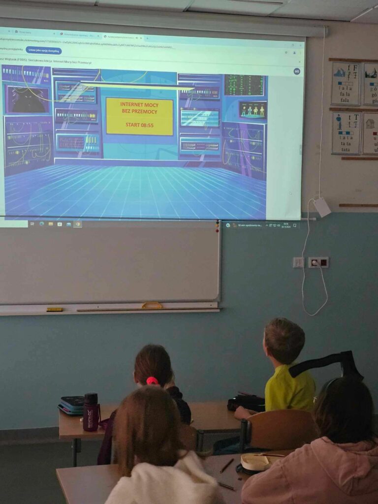 Klasy młodsze uczestniczyły w lekcji online dotyczącej bezpiecznego internetu pt.: „Internet Mocy Bez Przemocy”, zorganizowanej przez fundację „Dajemy Dzieciom Siłę „. Uczniowie podczas lekcji poznali drużynę Sieciaków, dowiedzieli się, jakie zagrożenia czyhają na nich w Internecie i w jaki sposób zadbać o swoje bezpieczeństwo online.