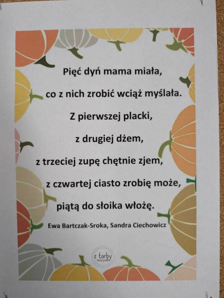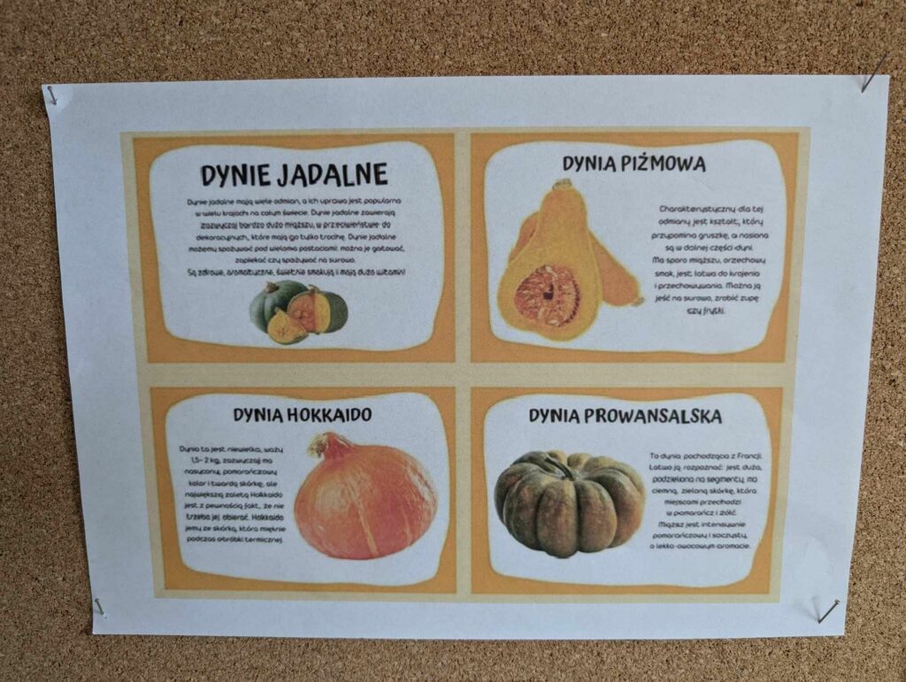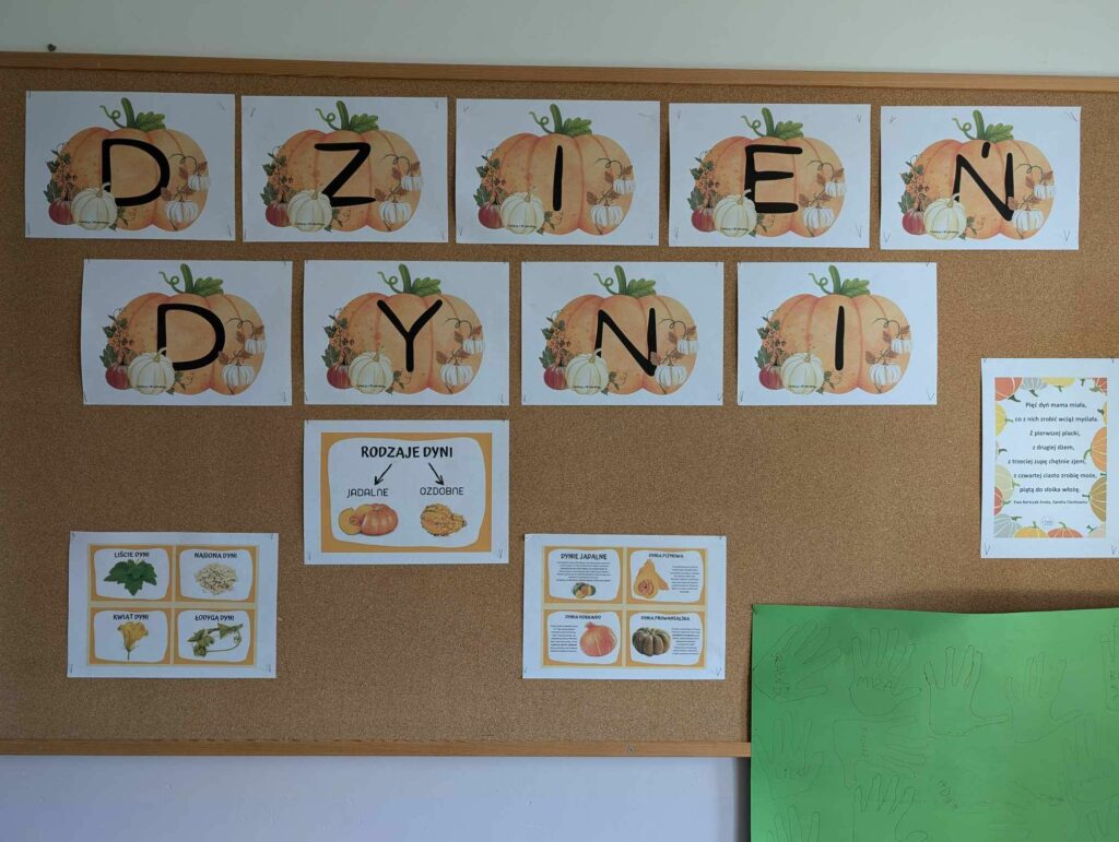 Z okazji Dnia Dyni w wielu klasach odbyły się zajęcia plastyczne oraz integracyjne, w których głównym motywem stała się dynia. Uczniowie oglądali, dotykali i próbowali miąższu dyni, pestek. Poznali historię pochodzenia dyni oraz potrawy, które można z niej przygotować.