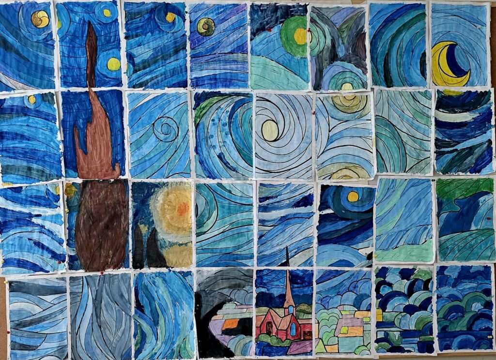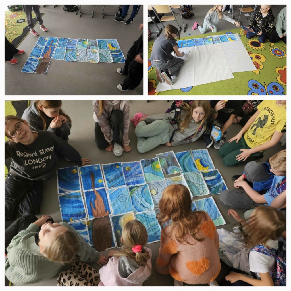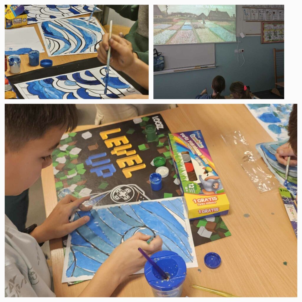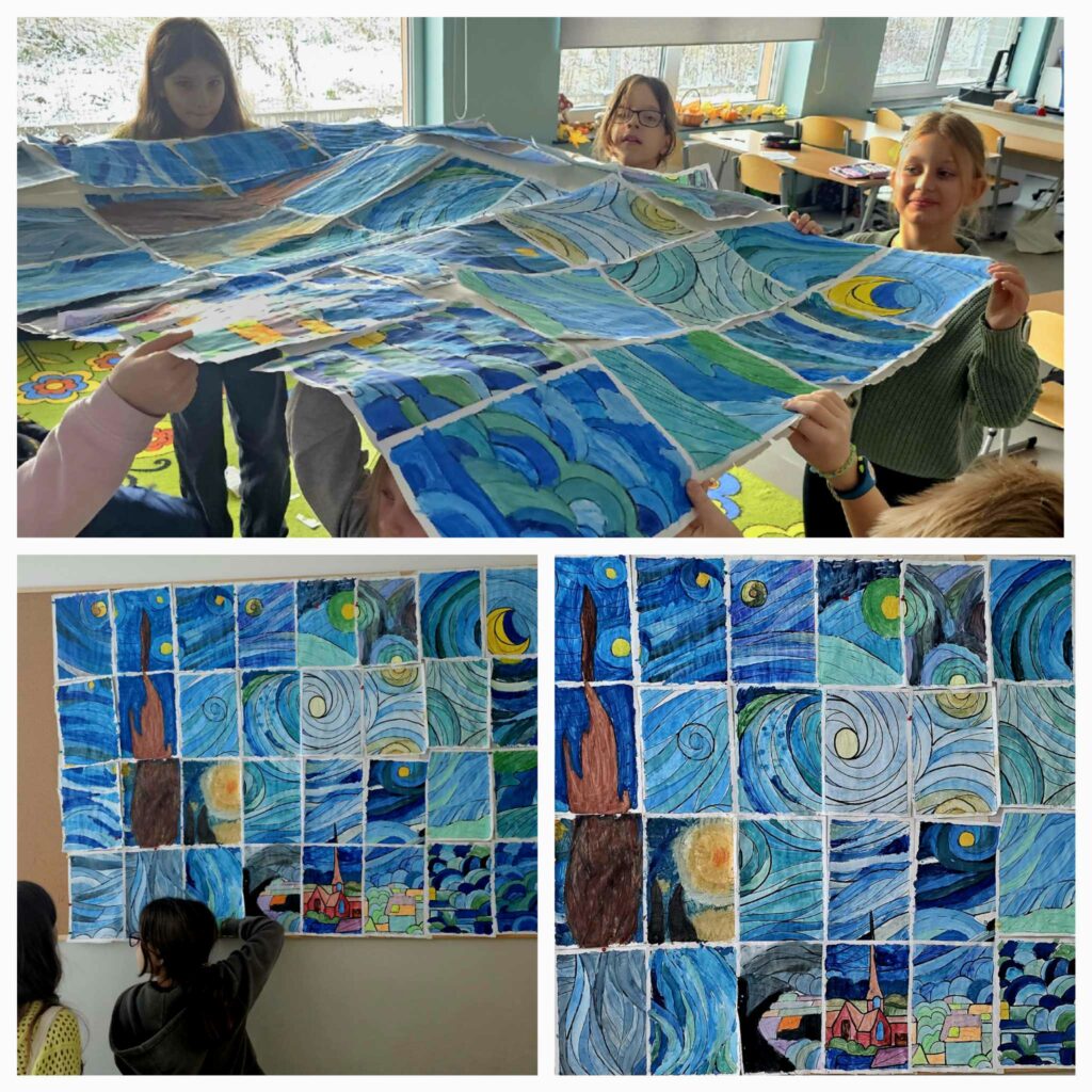 Klasa 3D biorąc udział w projekcie „Zabawa sztuką”, podjęła się wyzwania udziału w konkursie z użyciem materiałów z portalu #twinkle. Uczniowie poznali twórczość Vincenta Van Gogha i jego życie. Uczniowie obejrzeli film, opowiadający o malarzu i zabrali się do pracy, wybierając najdogodniejszą dla grupy technikę. Każdy uczeń miał swój wkład w dziele, tworząc całość. Tak powstała niepowtarzalna: Gwiaździsta Noc.