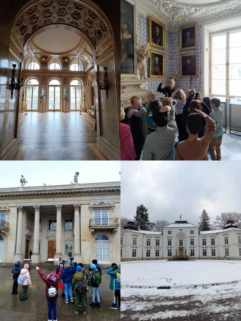 W listopadzie br. uczniowie klasy 2C oraz dzieci z zerówki pojechali do Muzeum w Łazienkach Królewskich na lekcję muzealną „Poznaj Króla”, która odbyła się we wnętrzu Pałacu na Wyspie. Spotkanie poprowadził edukator w formie warsztatu z elementami dramy i arteterapii. Uczniowie udali się na piętro Pałacu, gdzie mogli zobaczyć sypialnię, garderobę oraz łazienki króla Stanisława Augusta. Dowiedzieli się również, jak wyglądał jego dzień i czym się zajmował. Wizyta w Pałacu była dla uczniów wspaniałą okazją, aby przenieść się do wnętrz pałacu z XVIII wieku, a historyczne zabawy i gry pozwoliły im odkryć obyczaje ostatniego władcy Polski.