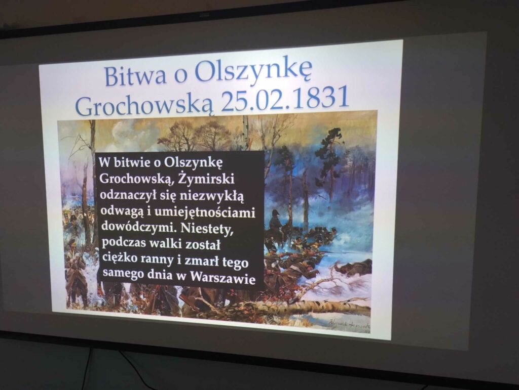 obchodziliśmy 194. rocznicę bitwy o Olszynkę Grochowską. Z tej okazji uczniowie klasy 3a mieli wyjątkową możliwość uczestniczenia w niezwykłej lekcji historii. Gościem specjalnym był pan Adam Domański, tata jednego z uczniów, który opowiedział o bohaterskich czynach swojego przodka – gen. Franciszka Żymirskiego, dowodzącego w tej bitwie 2. Dywizją Piechoty Wojska Polskiego. Uczniowie z ogromnym zainteresowaniem słuchali opowieści sięgających XIV wieku, poznając nie tylko historię bitwy, ale i dzieje rodu wielkiego polskiego patrioty. Serdecznie dziękujemy panu Adamowi Domańskiemu za poświęcony czas i fascynującą lekcję historii, która na długo pozostanie w naszej pamięci! ![]()