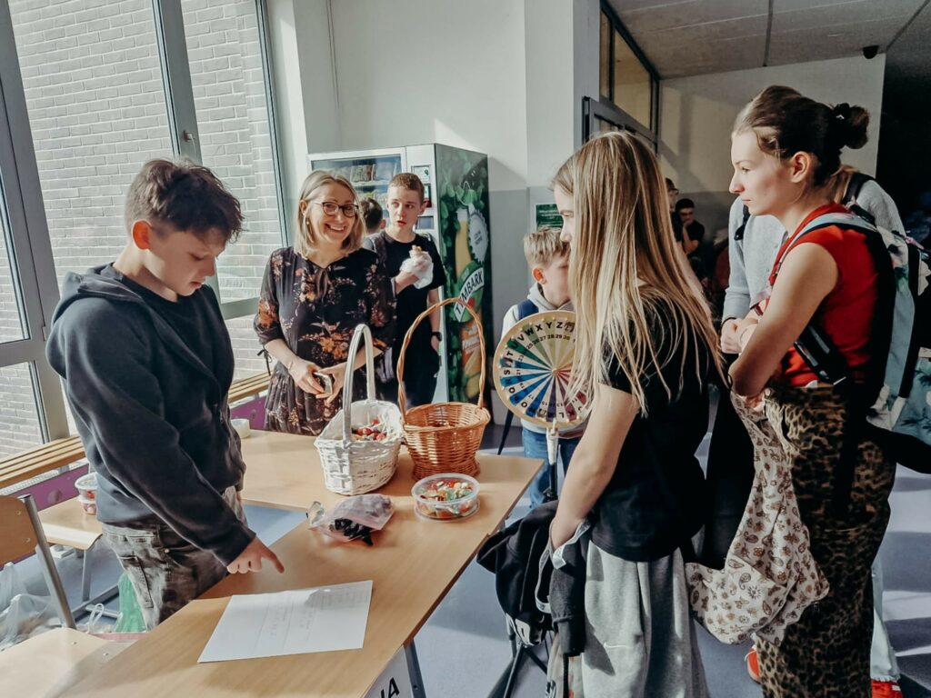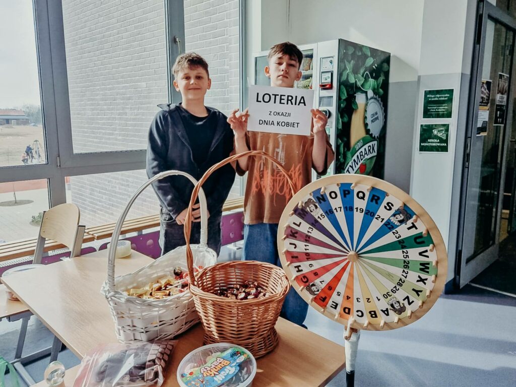 Z okazji Dnia Kobiet Samorząd Uczniowski przygotował loterię fantową! Dziewczęta miały okazję sprawdzić swoją wiedzę, odpowiadając na pytania, a w zamian otrzymywały drobne upominki.